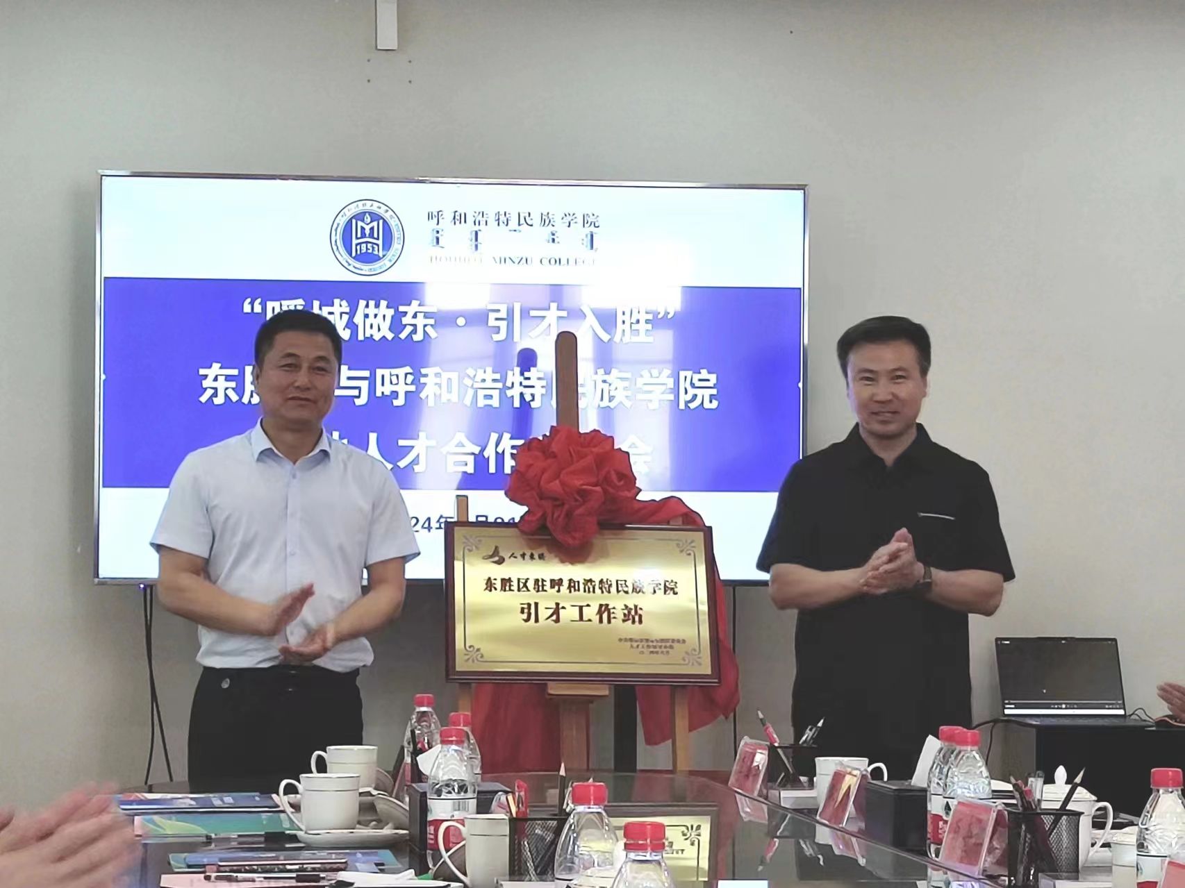 刘春光与额尔敦布和为“东胜区驻beat365英国官方网站引才工作站”揭牌。