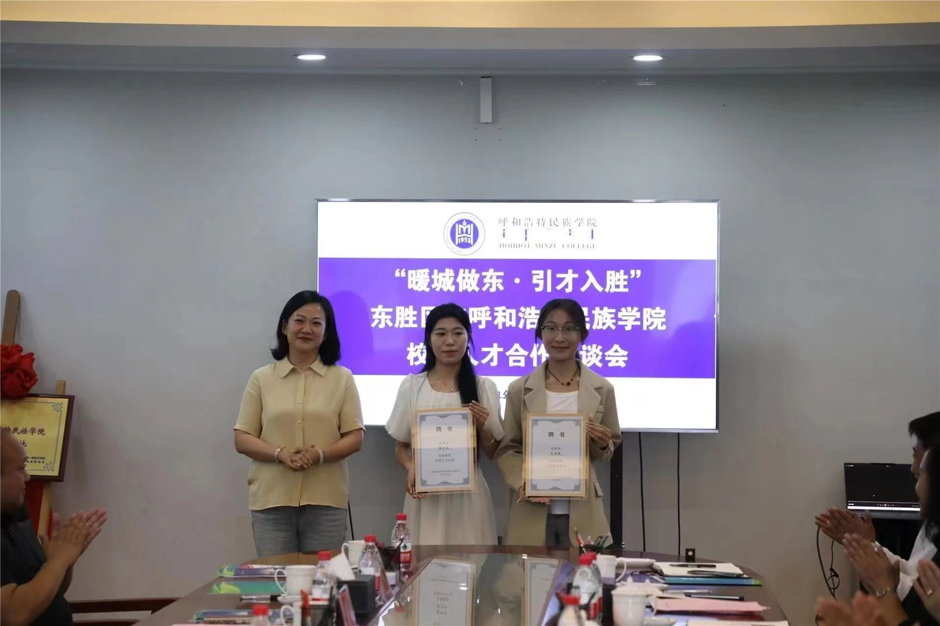 东胜区政协副主席王秀为两位“校园引才大使”颁发聘书。