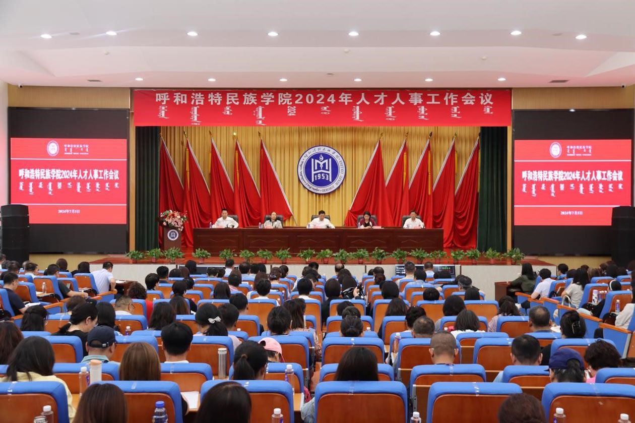 7月5日上午,学校在学术报告厅召开2024年人才人事工作会议。校党委书记刘九万,党委副书记格根哈斯,党委委员、纪委书记、监察专员王冬梅,党委委员、副校长高喜天,党委委员、副校长双虎出席,全校副处级以上干部、副高级职称以上教师、高层次引进人才参加会议。会议由格根哈斯主持。