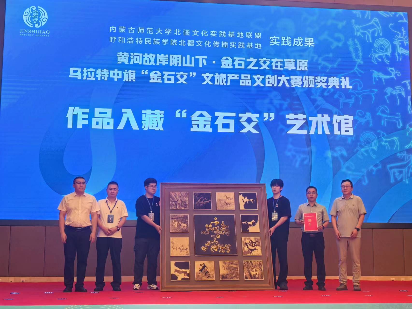 大赛启动以来,吸引了来自全国各地的文化企事业单位、研发设计平台机构、高校及科研院所的设计专业师生等团体和个人纷纷组织报名,共2192件作品新鲜出炉、竞相亮相。最终评选出金奖作品8件、银奖作品12件、铜奖作品17件,优秀奖作品25件。其中beat365官网美术与设计学院木仁老师作品《阴山魂系列作品》荣获金奖。同时,乌拉特中旗“金石交”艺术馆揭牌开馆现场beat365官网11件作品入藏艺术馆。