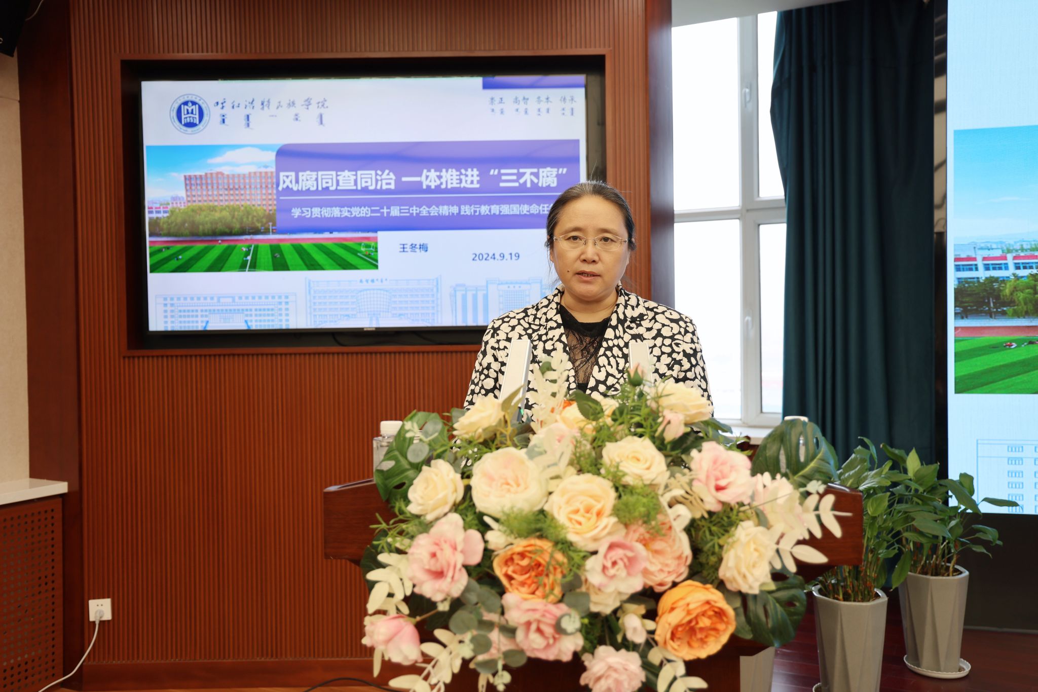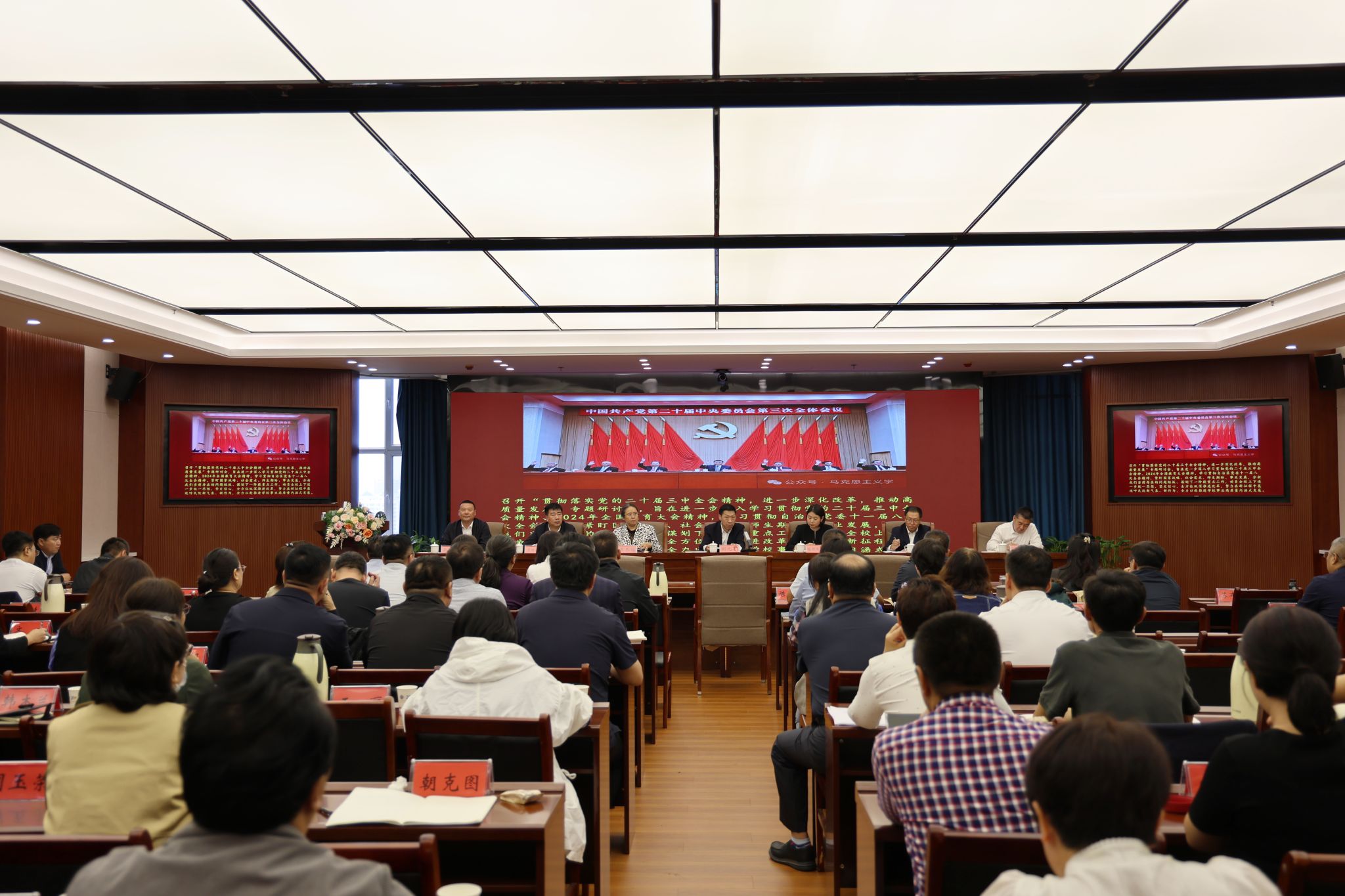 9月18日、9月19日,学校召开了“贯彻落实党的二十届三中全会精神,进一步深化改革,推动高质量发展”专题研讨会。校党委书记刘九万主持会议并作总结讲话。党委副书记格根哈斯,党委委员、纪委书记、监察专员王冬梅,党委委员、副校长高喜天,党委委员、副校长刘瑞鸿,党委委员、副校长额尔敦布和,党委委员、副校长双虎等校领导结合各自分管领域工作依次作了交流发言。