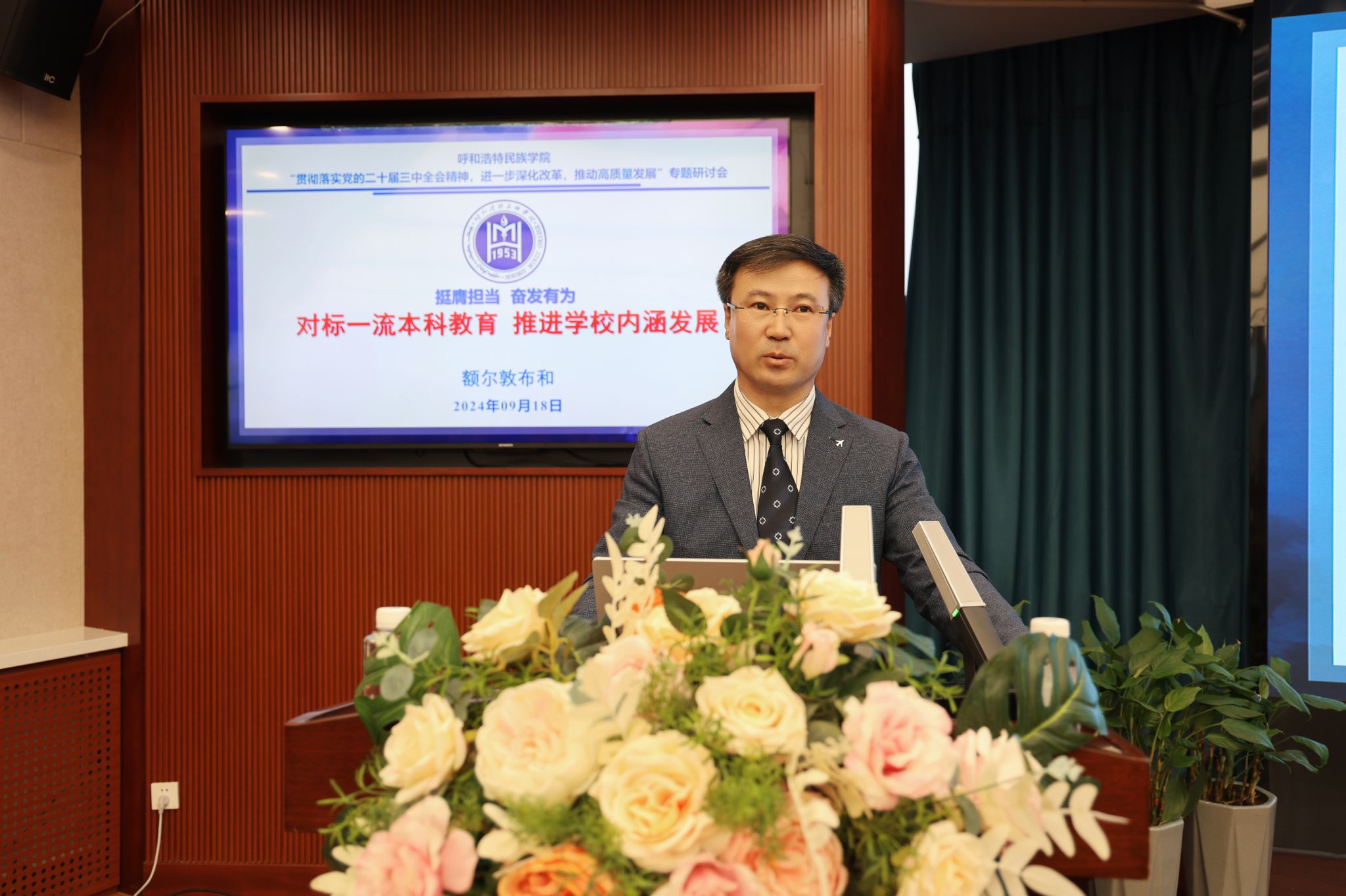 额尔敦布和以《挺膺担当 奋发有为 对标一流本科教育 推进学校内涵发展》为题作了交流发言。