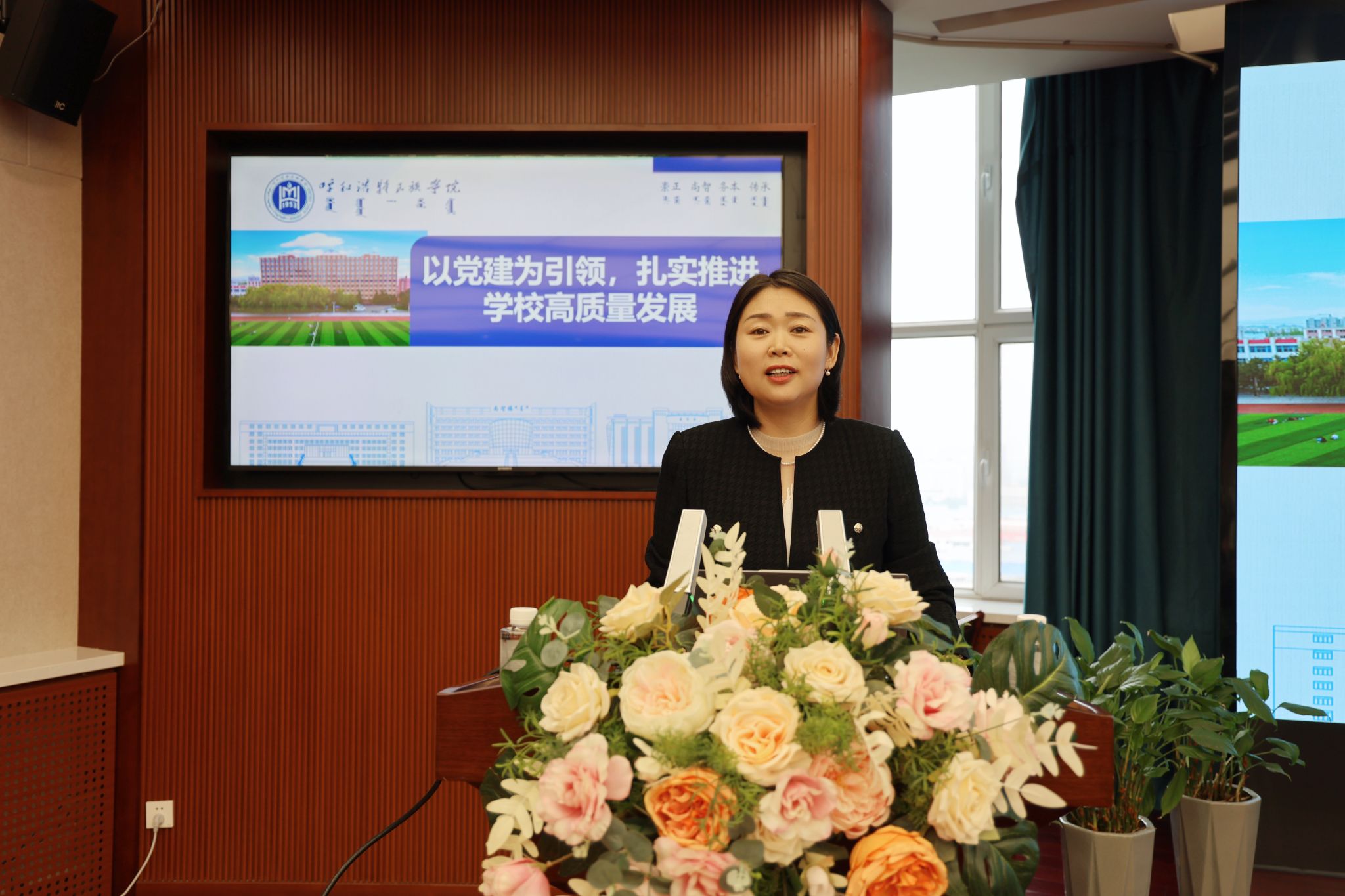 格根哈斯以《以党建为引领,扎实推进学校高质量发展》为题作了交流发言。