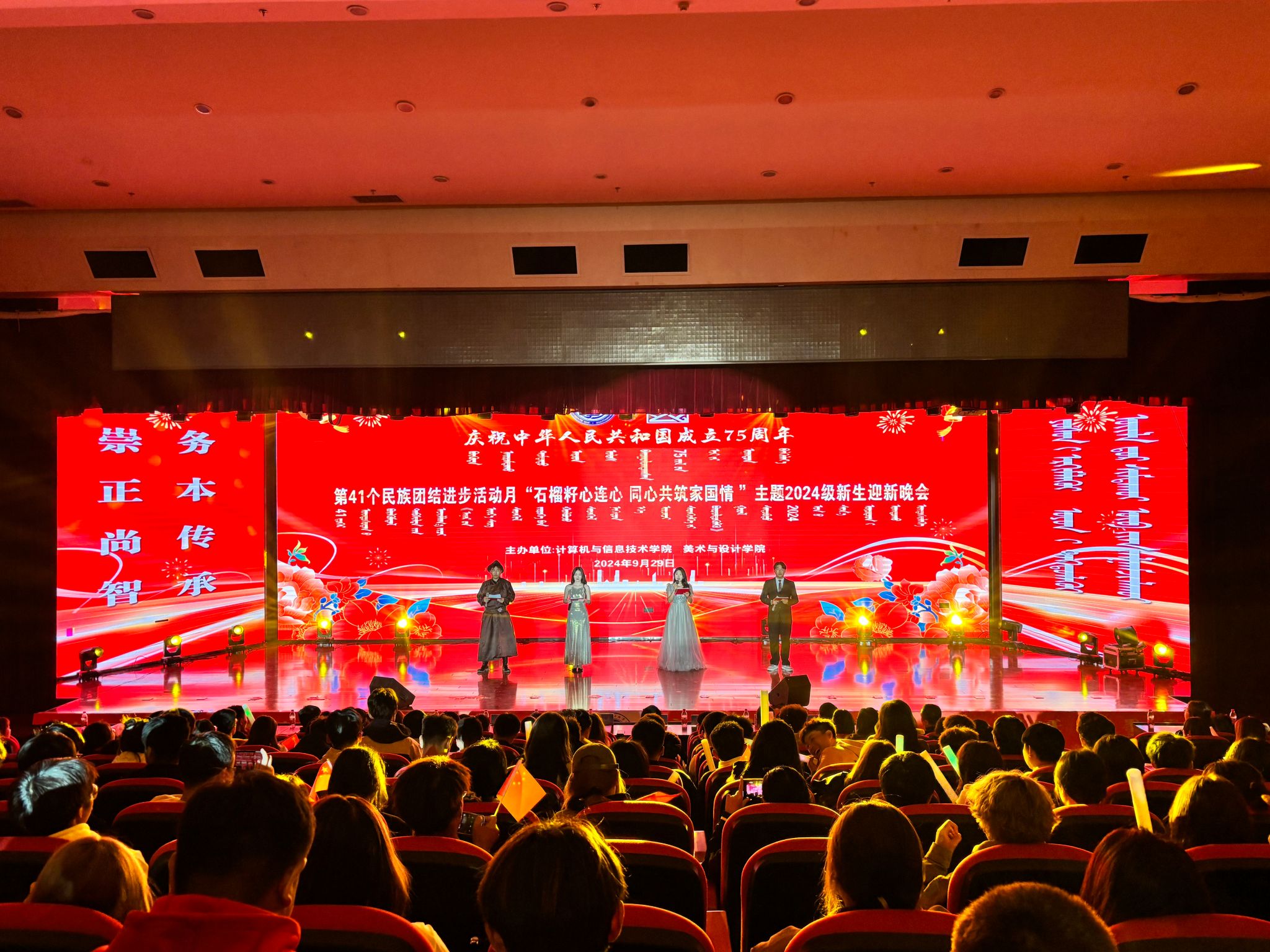 学校举办 “庆祝中华人民共和国成立75周年 第41个民族团结进步活动月‘石榴籽心连心 同心共筑家国情’主题2024级新生迎新晚会”