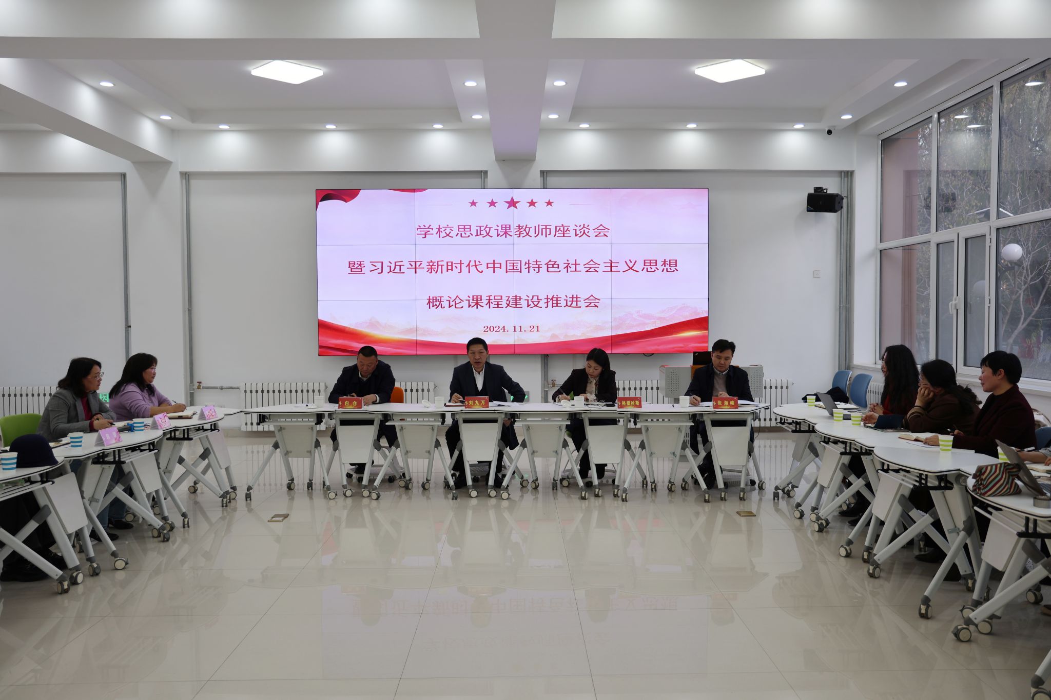 为进一步贯彻落实习近平总书记对思政课建设作出的重要指示精神,深入探索思政课建设的新路径、新方法,推动beat365官网思政课建设工作走深走实,11月21日,在“一站式”学生社区,校党委书记刘九万、党委副书记格根哈斯与思政课教师面对面进行座谈交流。