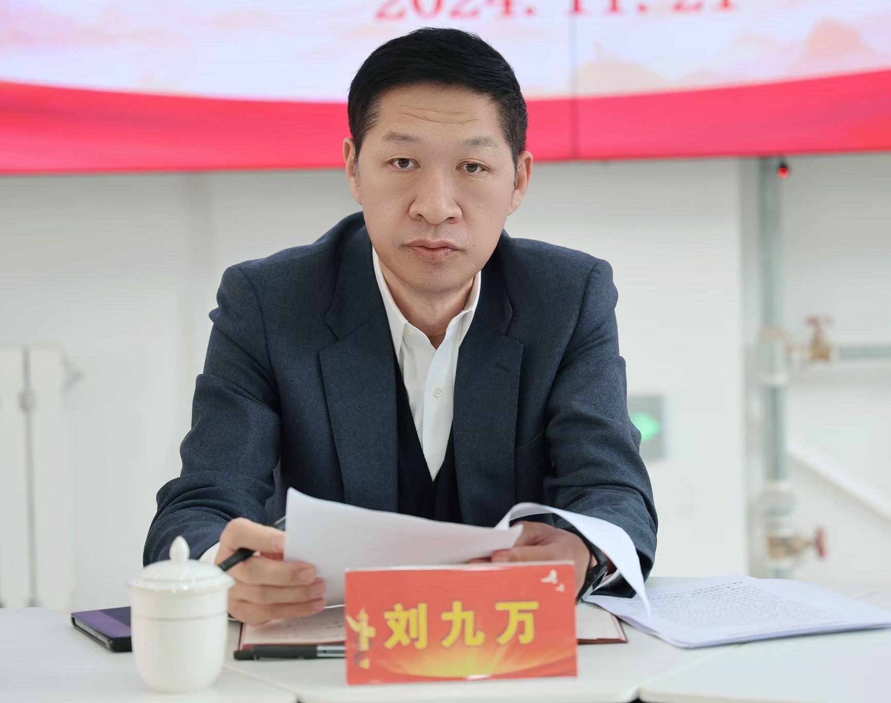 在认真听取大家发言之后,刘九万作了总结讲话。他指出,站在新时代新征程这一不断开创思政教育新局面的新的历史方位,面对推动思政课改革创新和思政课建设内涵式发展的新形势新任务,我们必须要主动作为。全体思政课教师要深入学习贯彻习近平总书记的重要指示精神,始终坚持马克思主义指导地位,以中国特色社会主义取得的举世瞩目成就为内容支撑,以中华优秀传统文化、革命文化和社会主义先进文化为力量根基,把道理讲深讲透讲活,守正创新推动思政课建设内涵式发展,不断提高思政课的针对性和吸引力,增强针对性和实效性,把思政课办出特色、办成品牌,不断开创新时代思政课建设新局面,努力培养更多堪当民族复兴重任的时代新人。