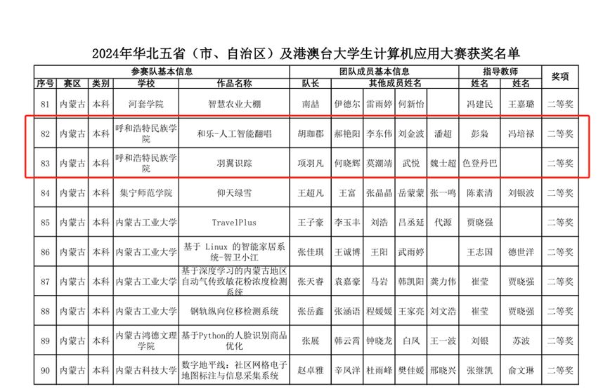 近日,“向日葵杯” 2024 年华北五省(市、自治区)及港澳台大学生计算机应用大赛决赛圆满落下帷幕,beat365官网计算机与信息技术学院学生胡珈郡题为《和乐-人工智能翻唱》的作品及项羽凡题为《羽翼识踪》的作品均获得二等奖,刷新了beat365官网在该项赛事的最好成绩。