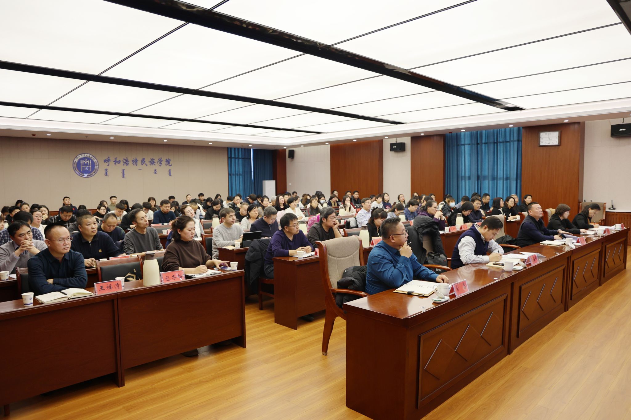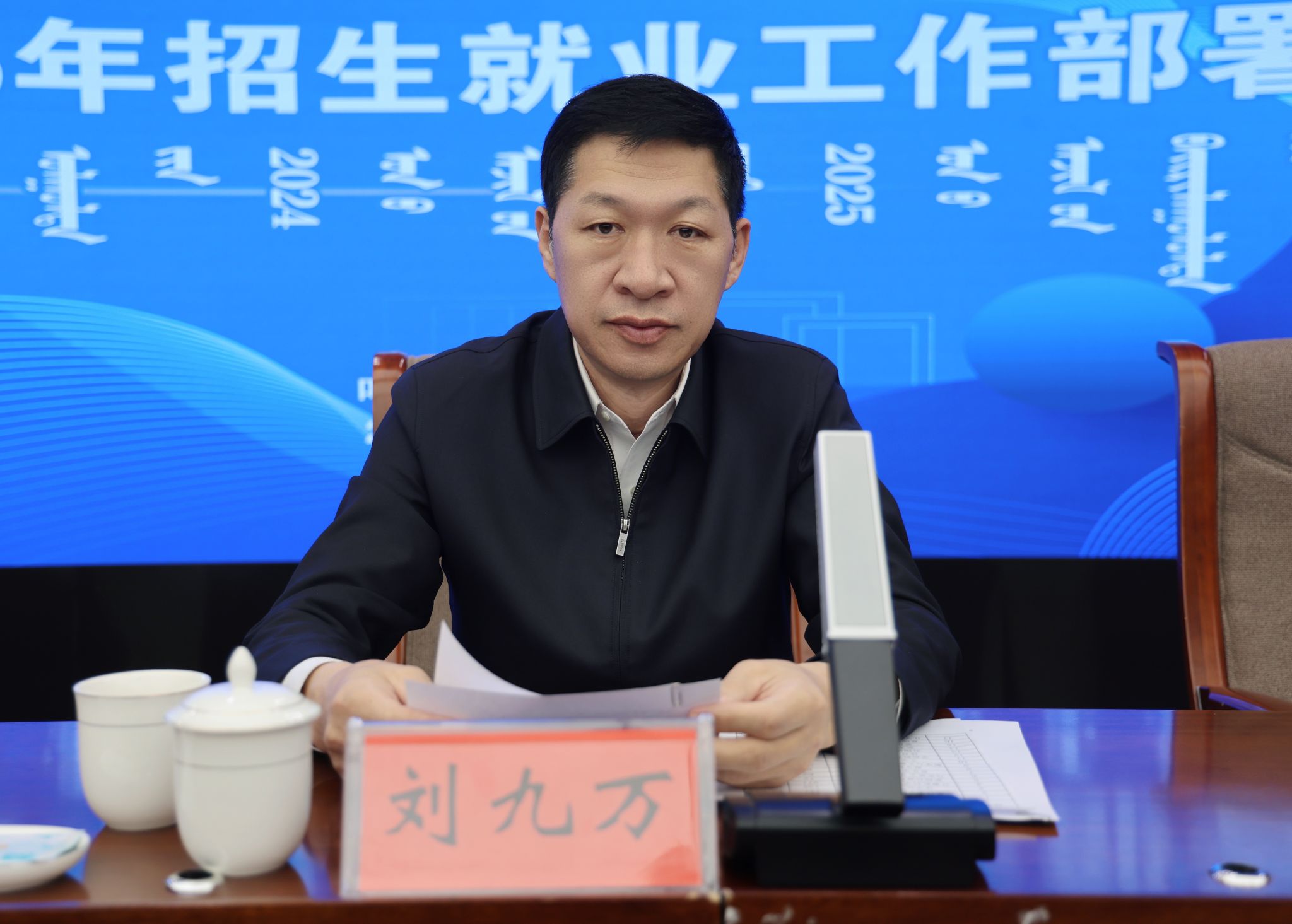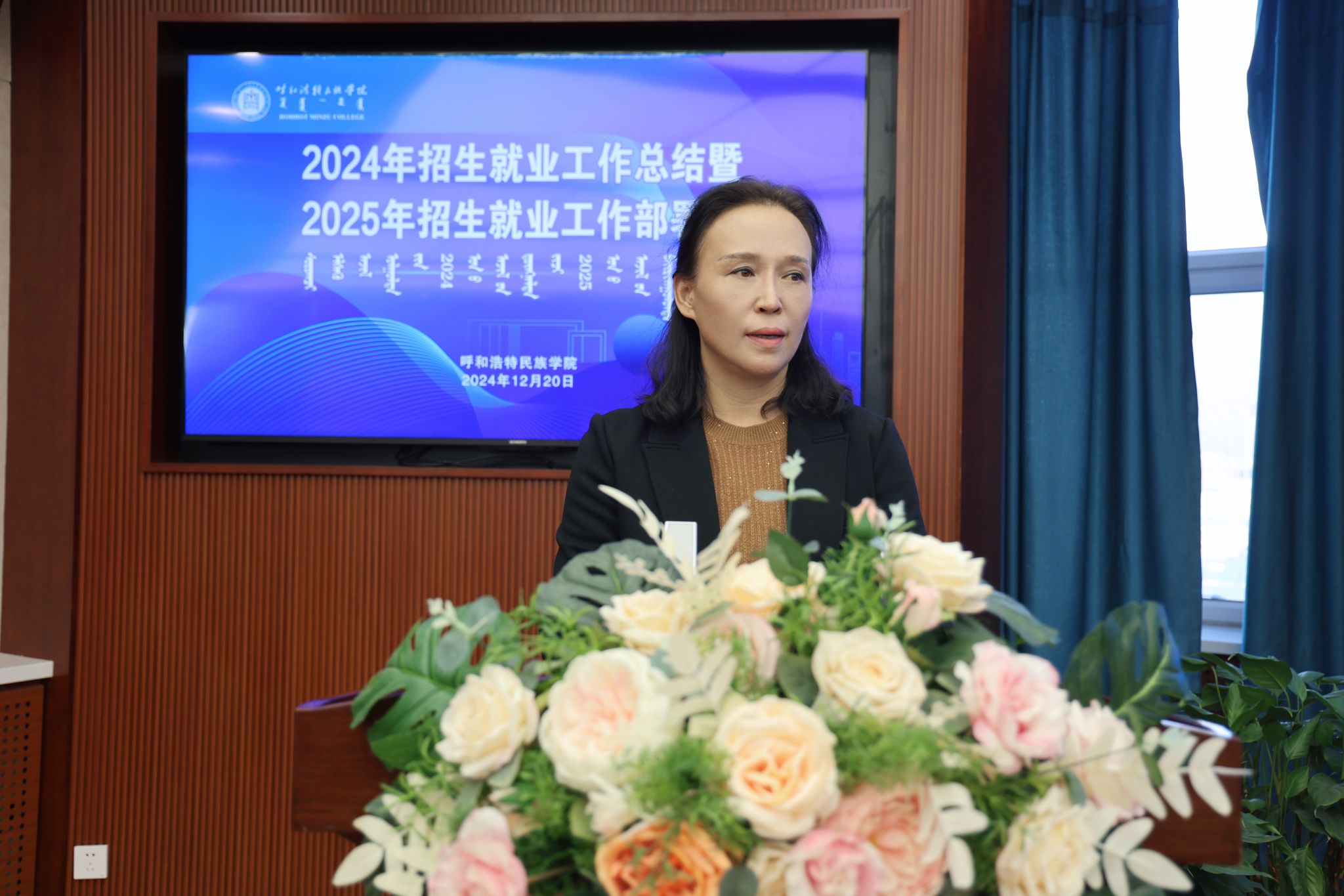 12月20日,学校在综合楼12楼会议室召开了2024年招生就业工作总结暨 2025年招生就业工作部署会议。校党委书记刘九万出席会议并讲话。党委副书记格根哈斯,党委委员、纪委书记、监察专员王冬梅,党委委员、副校长高喜天,党委委员、副校长刘瑞鸿,党委委员、副校长额尔敦布和,党委委员、副校长双虎出席会议。会议由额尔敦布和主持。