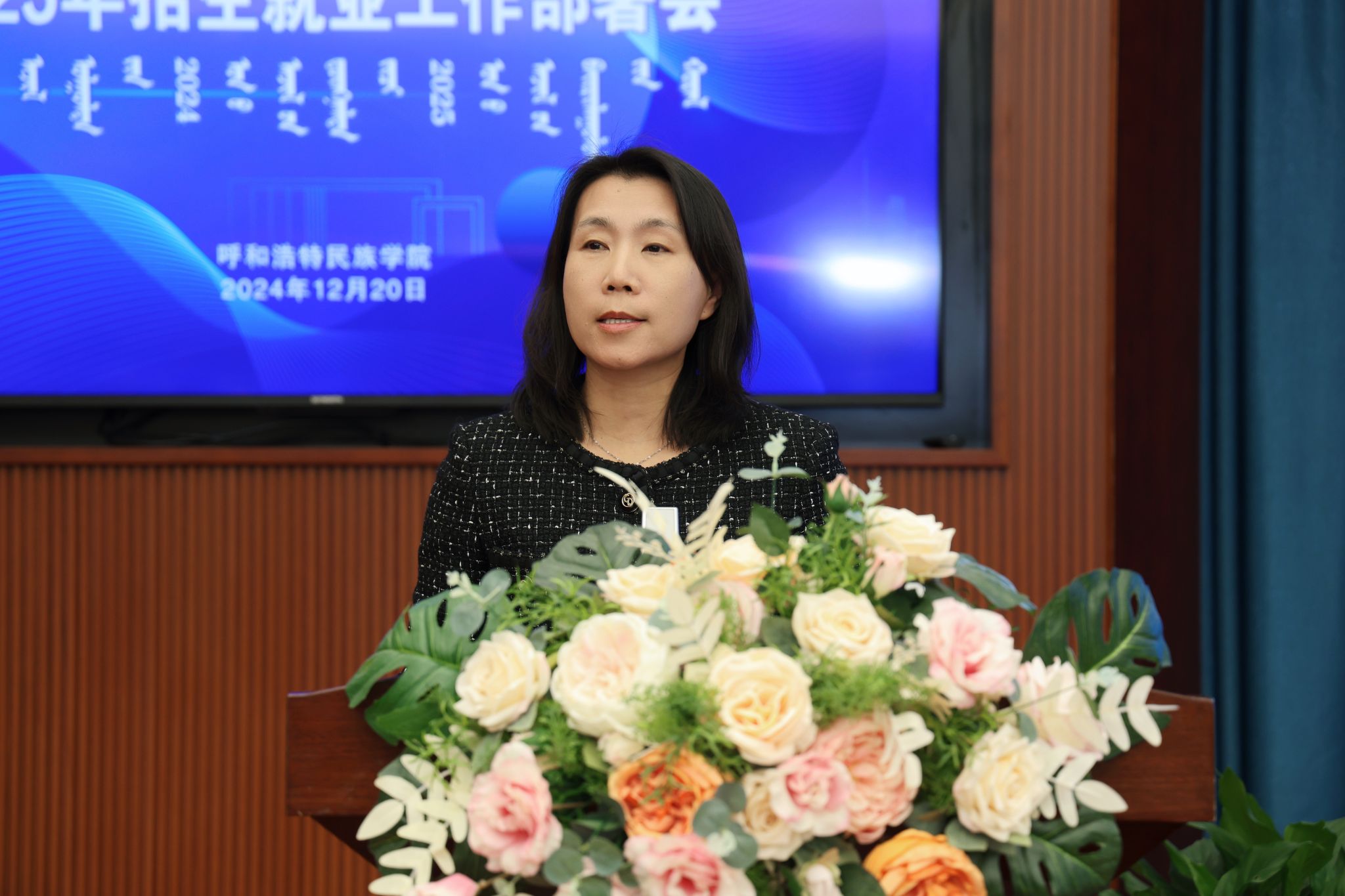招生就业处处长娜仁其木格通报学校2024届毕业生去向落实率及各学院落实情况。