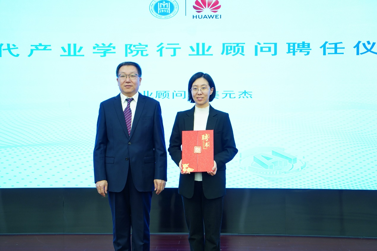 期间,进行了华为现代产业学院行业顾问聘任仪式,由刘瑞鸿为姜元杰颁发了行业顾问聘任书。