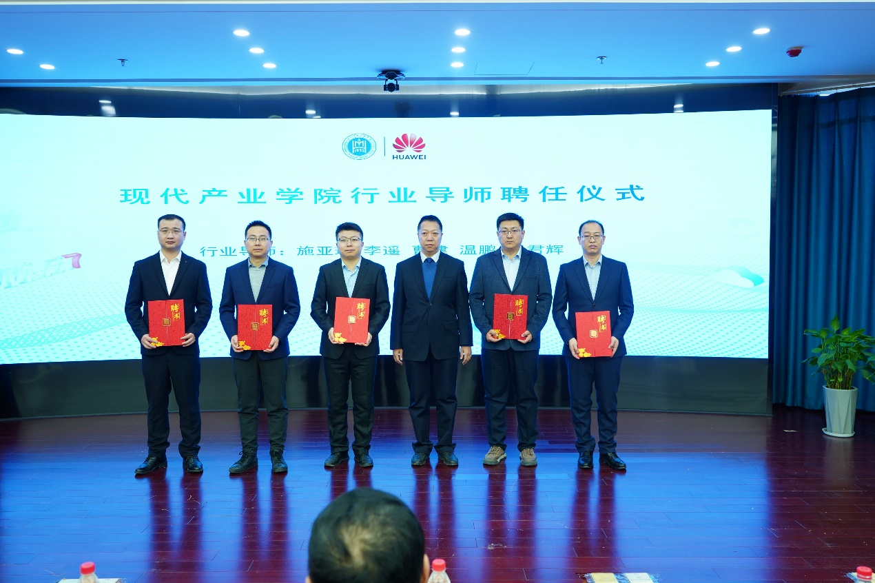 期间,还进行了华为现代产业学院行业导师聘任仪式。双虎为施亚琦、李遥、曹建、温鹏、祝君辉颁发了行业导师聘任书。