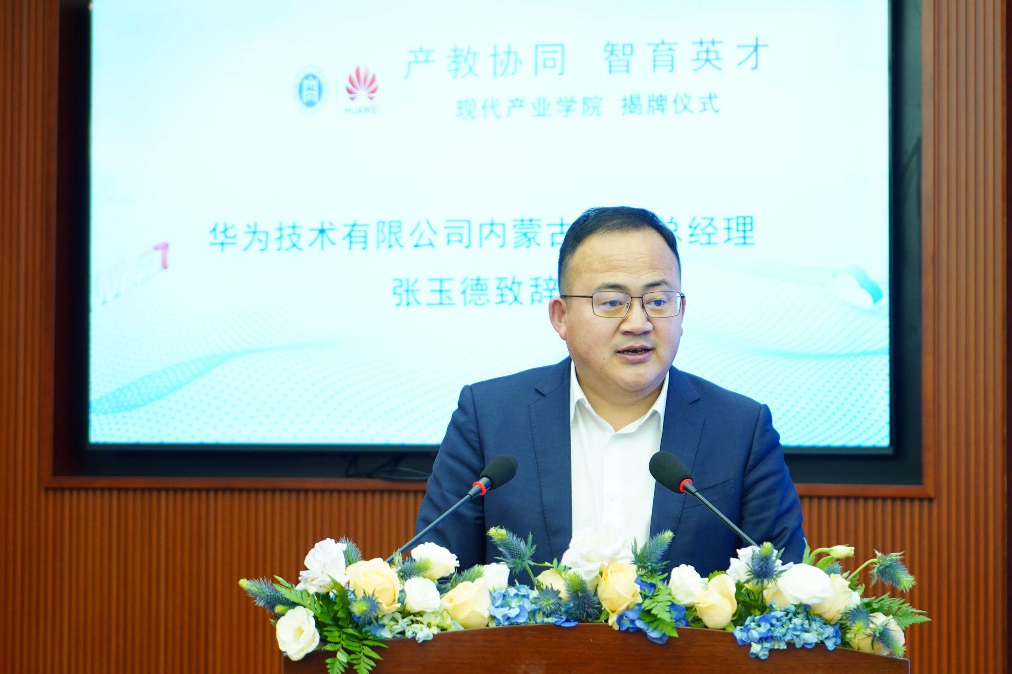 额尔敦布和在仪式上致辞。他简要介绍了学校的办学历史,表示学校高度重视现代产业学院的建设工作。他指出,今天的揭牌仪式标志着beat365官网与华为在产教深度融合、协同育人方面迈出了坚实的一步,也是贯彻新发展理念、对标教育部现代产业学院建设标准的有力实践。他希望,现代产业学院在人才培养的道路上不断前行,进一步拓展合作领域,深化合作层次,不仅在技术研发、成果转化等方面加强协同创新,更要在国际交流与合作中共同探索新机遇,助推学院提升国际影响力。