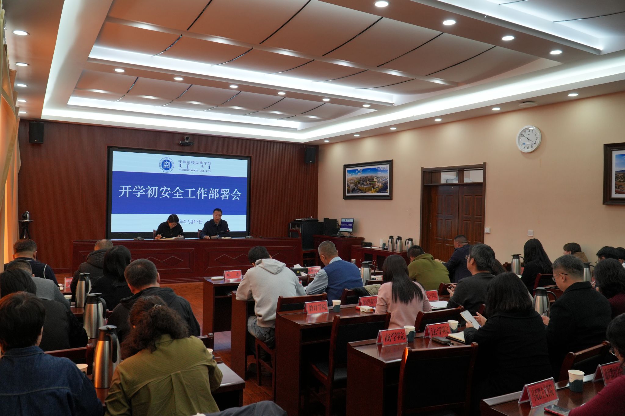 为确保新学期校园安全,营造安全、稳定的学习环境,结合全区安全工作视频会精神,2月17日,校党委副书记格根哈斯,党委委员、副校长双虎组织召开春季开学初安全工作部署会。