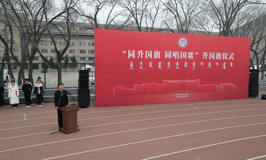 3月3日,学校在南操场举行办“同升国旗 同唱国歌”升国旗仪式。