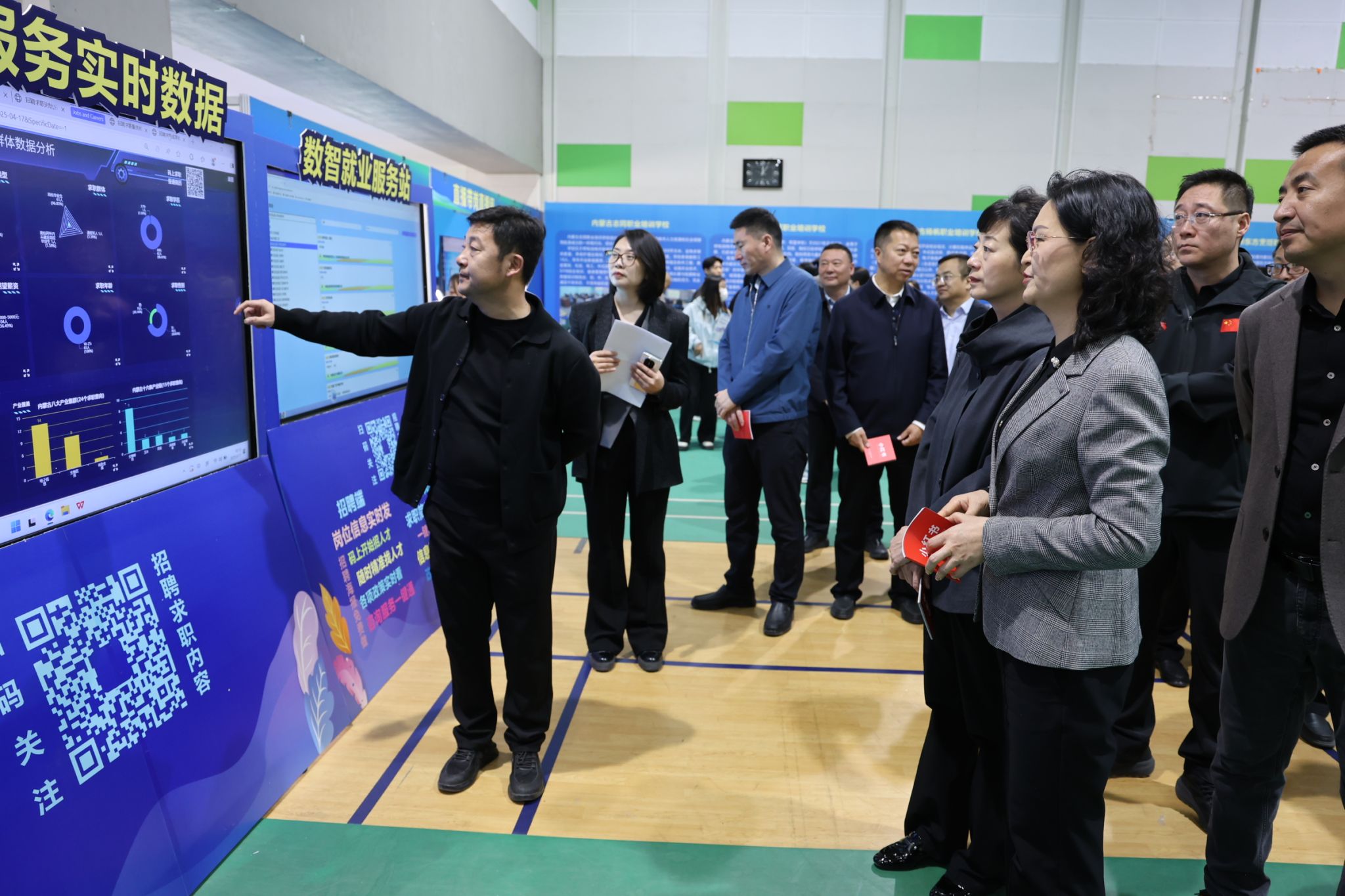 活动前,校党委书记刘九万,校党委委员、副校长双虎与自治区人力资源和社会保障厅党组成员、就业服务中心主任伏凌涛,自治区团委副书记刘建辉等一行就学校就业工作进展及深化政校协作进行了座谈交流,共商推动毕业生高质量就业举措。