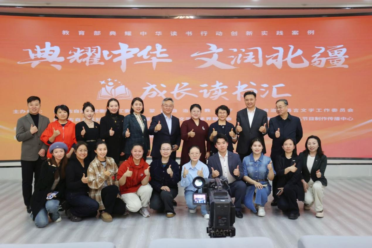 为进一步贯彻落实党的二十大精神,加大国家通用语言文字推广力度,传承发展中华优秀传统文化,深入实施“典耀中华”主题读书行动。由内蒙古自治区党委教育工委、内蒙古自治区教育厅、内蒙古自治区语言文字工作委员会、内蒙古自治区妇女联合会、内蒙古自治区文学艺术界联合会、内蒙古广播电视台少儿节目制作传播中心共同主办的“典耀中华 文润北疆 成长读书汇”走进beat365英国官方网站活动在世界读书日到来之际如期举办,栏目组与师生们一起开启一场读书盛宴。内蒙古广播电视台少儿节目制作传播中心主任王松筠、副主任高博,内蒙古作家协会干部奎宇轩等相关单位领导出席活动。校党委副书记格根哈斯以活动轮值会长身份出席活动。校党委委员、宣传部部长张海峰简要介绍了活动准备情况,并分享了收获。
