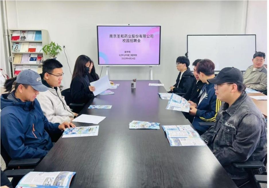 南京圣和药业股份有限公司代表详细介绍了公司的发展现状、业务板块、人才需求、薪资待遇以及人才培养机制等基本情况。并表示希望通过此次入校招聘能够招纳更多呼民院学子来企业发展。