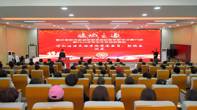 宣介会上,校党委委员、副校长双虎致辞表示,学校近年来紧密围绕国家西部发展战略,持续深化产教融合,近三年毕业生在蒙就业率超70%。他鼓励民院学子要把握区域发展机遇,积极投身自治区建设。鄂尔多斯市人民政府副秘书长杨继强强调,将以最优政策、最大诚意支持人才扎根鄂尔多斯,助力青年在“草原暖城”书写人生华章。