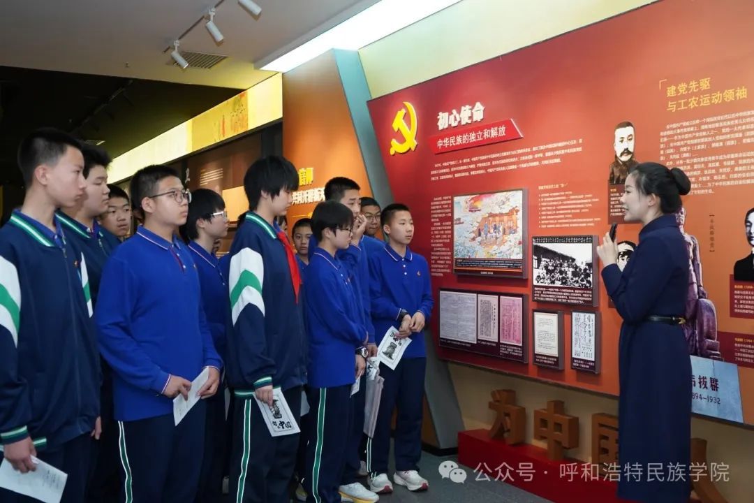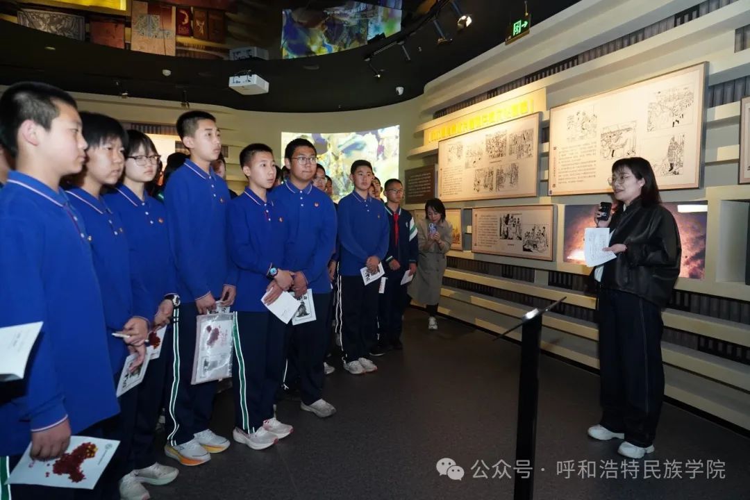 座谈会后,实验中学师生在铸牢中华民族共同体意识教育馆进行“行走的思政课”实践教学。实验中学思政课教师依托教育馆丰富的展陈资源,精心设计“理论浸润+场景体验”双轨教学模式。通过文物展陈、交互体验等科技手段将历史脉络转化为鲜活教材,教育引导青少年树立正确的“五观”,推动铸牢中华民族共同体意识内化于心、外化于行。现场教学后,实验中学一行人员参观了beat365官网校史馆。