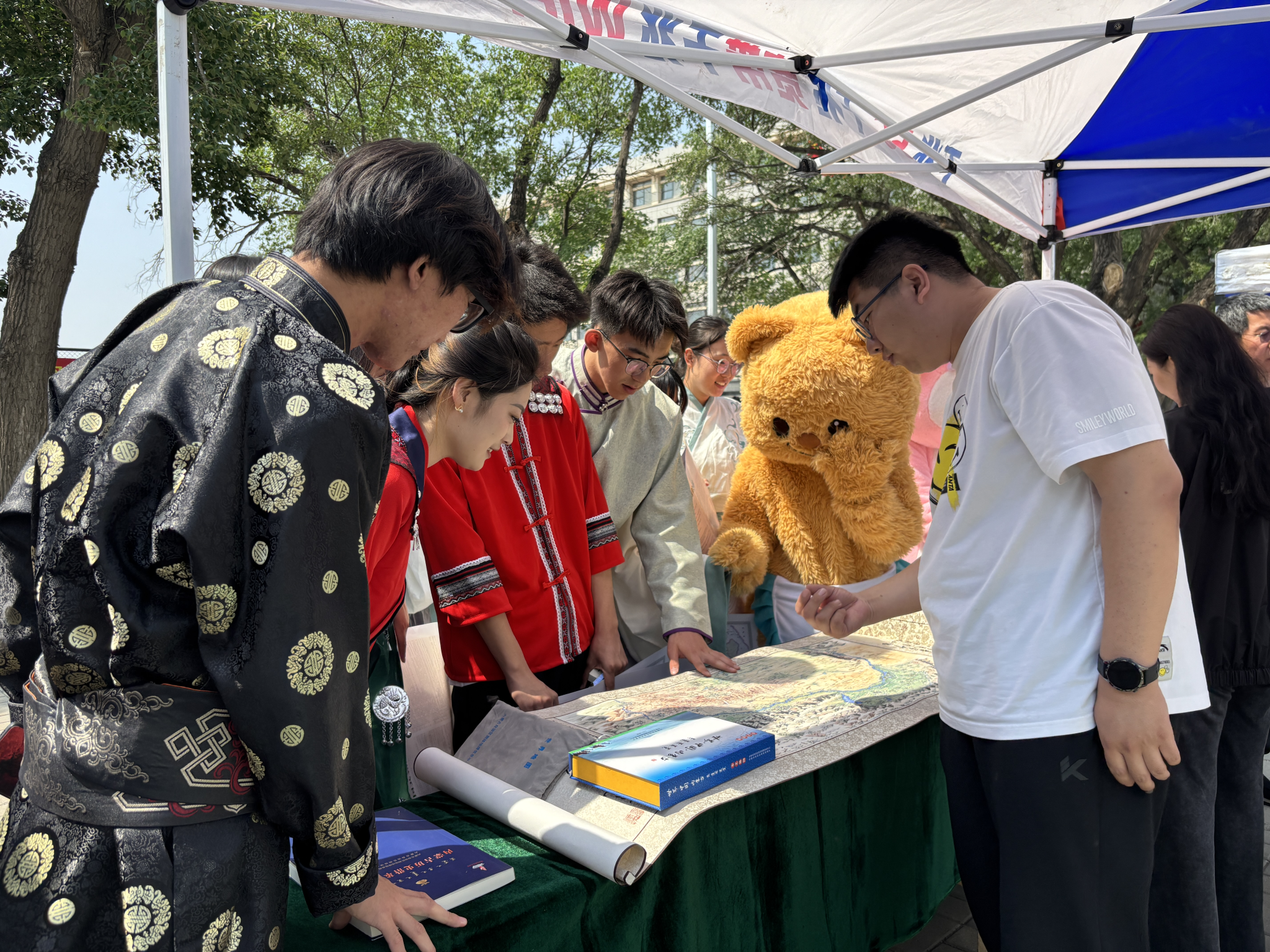 为有形有感有效铸牢中华民族共同体意识,弘扬北疆文化,推动民族政策宣传月、民族法治宣传周活动走深走实,5月28日,由学校党委统战部发起并组织自治区民族事务委员会地方语言文字研究应用中心(内蒙古民族团结杂志社)、内蒙古自治区测绘地理信息中心、内蒙古自治区住房资金中心、呼市公交公司、呼市中蒙医院、学校美术与设计学院等单位联合举办“石榴籽e起来——政策宣讲、科普服务进校园”活动。