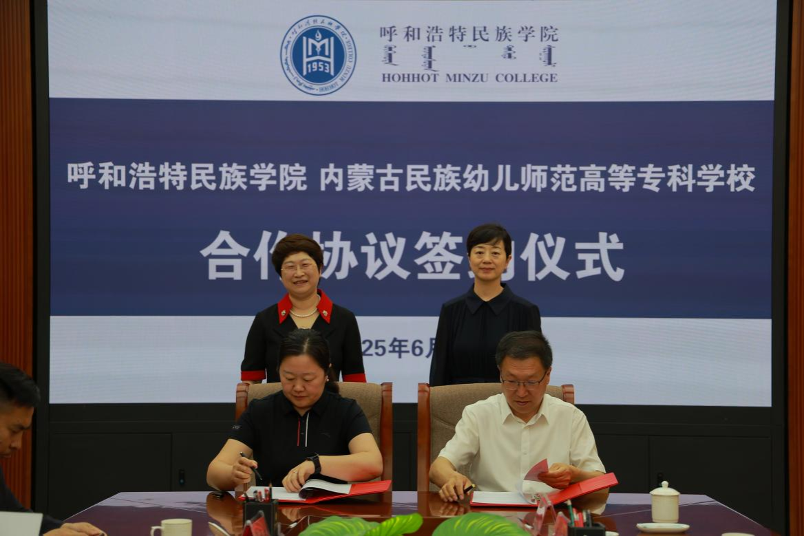 6月9日,内蒙古民族幼儿师范高等专科学校党委副书记、校长李春晖一行来校考察调研并签署合作协议。校党委书记刘九万在学校铸牢中华民族共同体意识教育馆与李春晖一行作了深入交流。党委副书记、校长王敏,党委委员、副校长高喜天,党委委员、副校长刘瑞鸿出席了签约仪式。会议由高喜天主持。