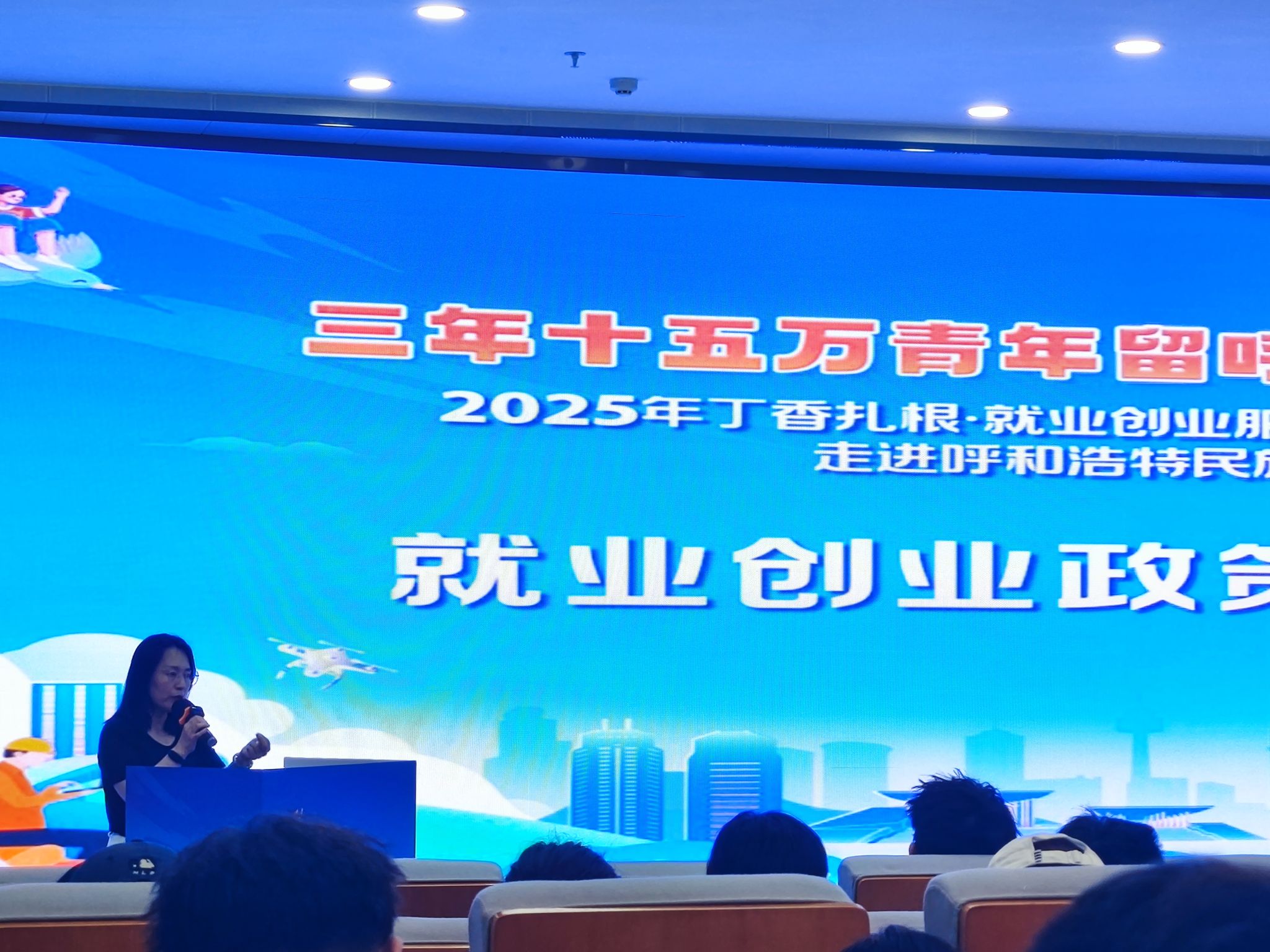 招聘会前,学校在北区图书馆1楼报告厅举办了政策宣讲会,呼市人社局就业促进科相关人员围绕城市环境、产业结构、人才政策、生活保障等方面进行详细介绍,并为毕业生提供了现场答疑服务。