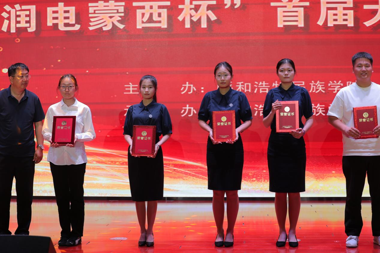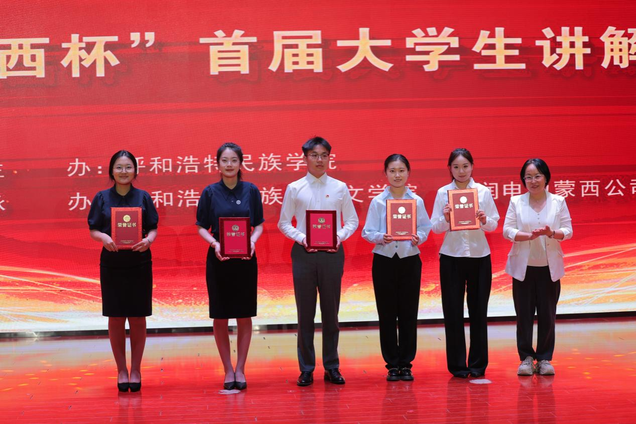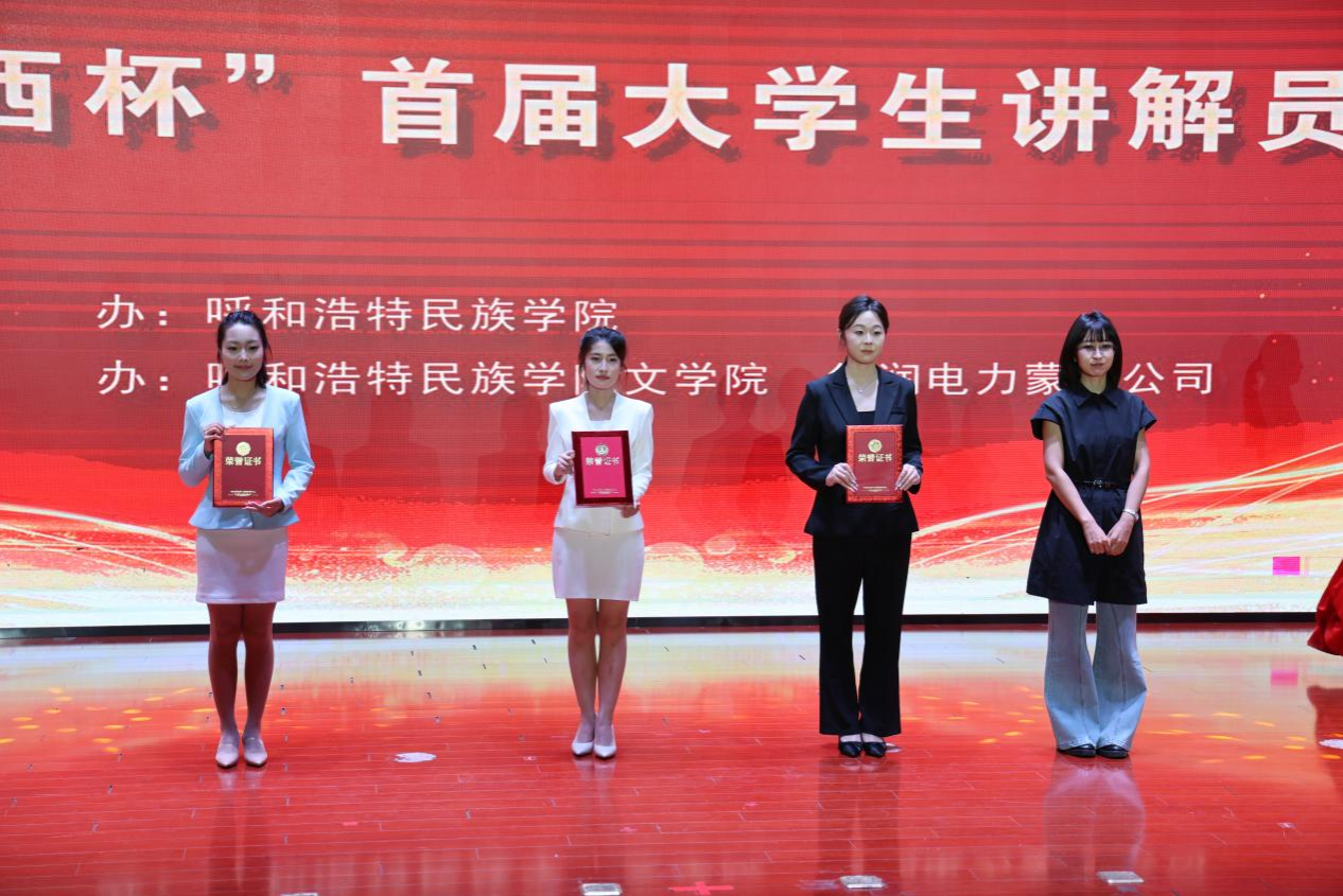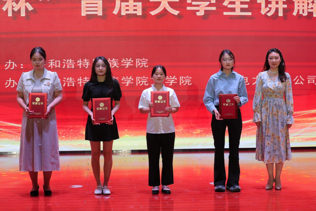 党委统战部部长朝格吉乐图宣读了《beat365英国官方网站党委统战部关于表彰“北疆小红马”大学生讲解团的决定》,现场嘉宾为“金牌讲解员”“突出贡献奖”“优秀讲解员”和“最佳潜力讲解员”颁发了荣誉证书,刘丽颖老师被授予“优秀指导教师”称号。