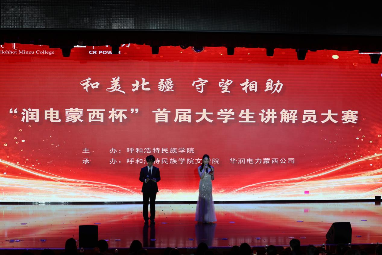 6月20日,学校“和美北疆 守望相助——‘润电蒙西杯’首届大学生讲解员大赛”决赛圆满落幕。本次大赛由党委统战部主办、文学院承办,华润电力蒙西公司支持,以铸牢中华民族共同体意识为主线,通过创新讲解形式展现北疆文化魅力,推广普及国家通用语言文字,深化民族团结进步教育实践。新城区民委主任樊建军,华润电力蒙西公司组织部、人力资源部部长董迪,学校党委委员、副校长刘瑞鸿,党委委员、统战部部长朝格吉乐图,党委委员、宣传部部长张海峰等领导出席活动。内蒙古博物院资深讲解员富瑞霞,呼和浩特市民族事务委员会民族团结促进科科长薛敏,教务处副处长乌兰及文学院院长高娃担任评委。来自文学院、法学院、教育学院、商学院、新闻传媒学院、马克思主义学院的400名学生到现场观看。