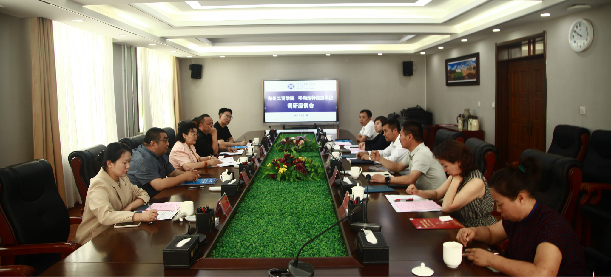 7月1日上午,郑州工商学院艺术学院院长雷红薇一行五人莅临beat365官网进行调研交流。本次调研以非遗文化传承与教育发展为主题,通过座谈交流和实地考察的形式展开。校党委委员、宣传部部长张海峰与调研组一行座谈交流。座谈会由教务处处长肖查娜主持。音乐与舞蹈学院、体育学院、美术与设计学院相关负责人参加座谈并陪同调研。