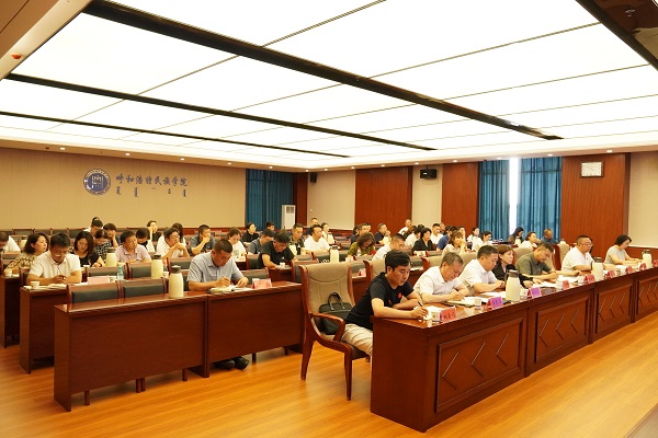 党委委员、副校长额尔敦布和就“1+3+3”报告的撰写情况以及各单位支撑材料的完成情况进行通报,并对各项目组、各部门和各二级学院下一阶段自评自建的具体任务、时间节点及相关要求作出了系统部署。他表示,全校上下应凝聚合力,坚持“真、实、准”的原则,以严谨务实的态度深入挖掘问题,充分展现自身亮点特色,切实贯彻以评促建的要求。