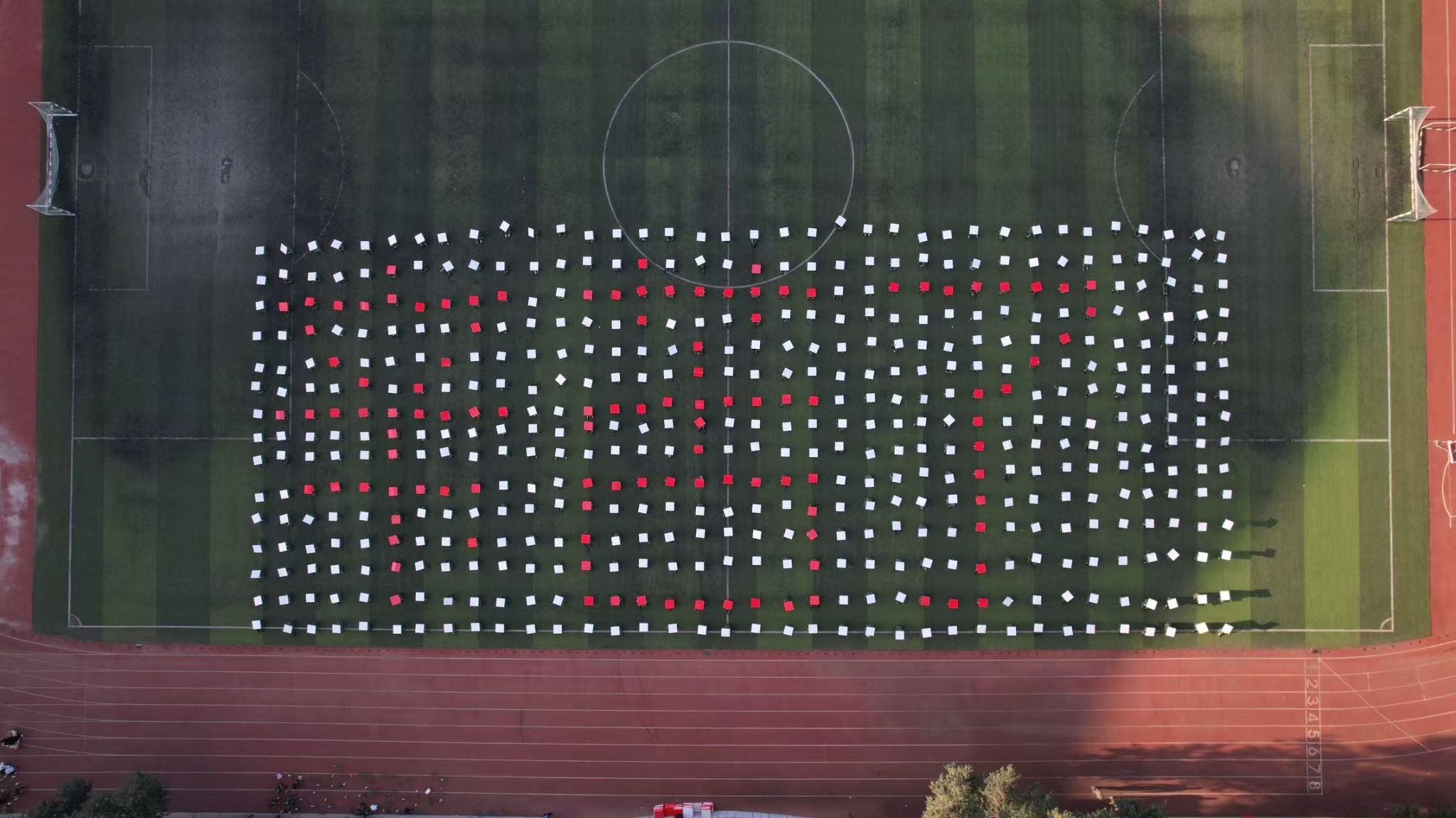 比赛尾声,恰逢教师节前夕,全体新生手持“老师您辛苦了”“祝老师节日快乐” 等字样的灯牌,在操场上整齐亮相,以温暖的灯光与真挚的祝福,向教师表达敬意。