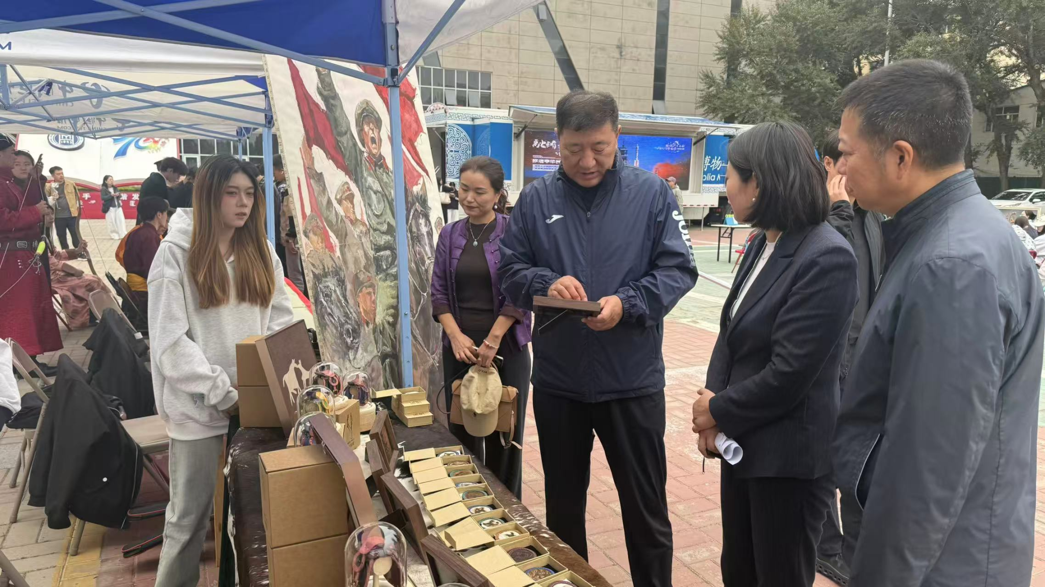 为进一步深化民族团结进步教育,以有形、有感、有效的方式铸牢中华民族共同体意识,9月25日下午,学校党委统战部、团委联合内蒙古自治区民族事务委员会地方语言文字研究应用中心(内蒙古民族团结杂志社)、内蒙古博物院,在都林广场共同举办“内蒙古博物院流动数字博物馆进校园暨校园铸牢中华民族共同体意识文化节”专场活动。活动依托数字展车、中华文化体验、非遗展示、知识竞赛等形式,为师生打造了一堂沉浸式“行走的思政课”。内蒙古自治区民族事务委员会地方语言文字研究应用中心(内蒙古民族团结杂志社)主任阿拉坦巴根那,内蒙古博物院社会教育部副部长石瑛,学校党委副书记格根哈斯,党委委员、副校长双虎出席活动。奔腾融媒、新闻天天看等媒体栏目进行现场报道。