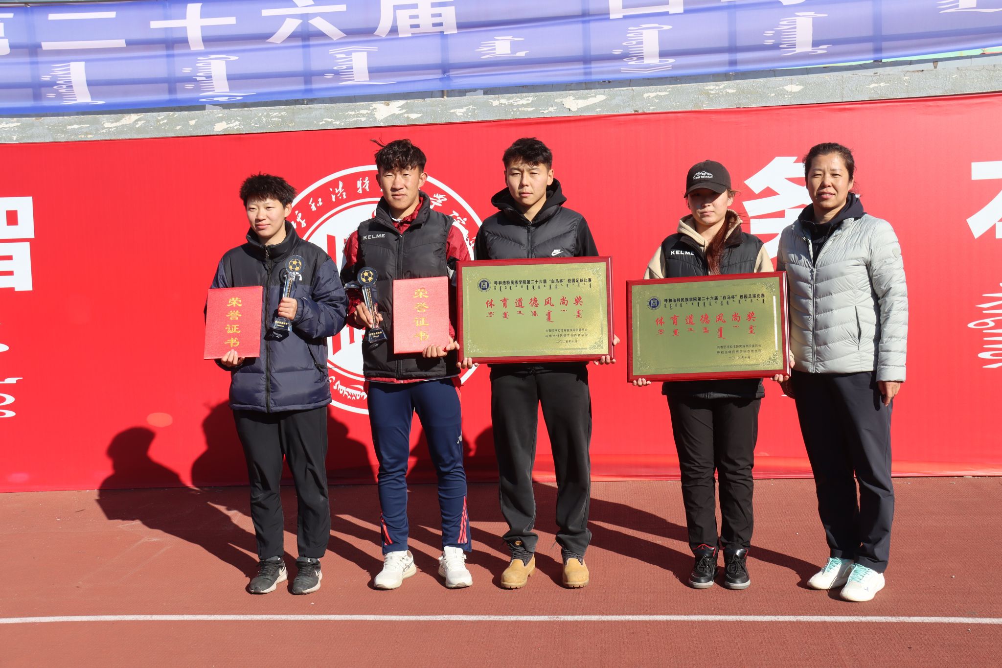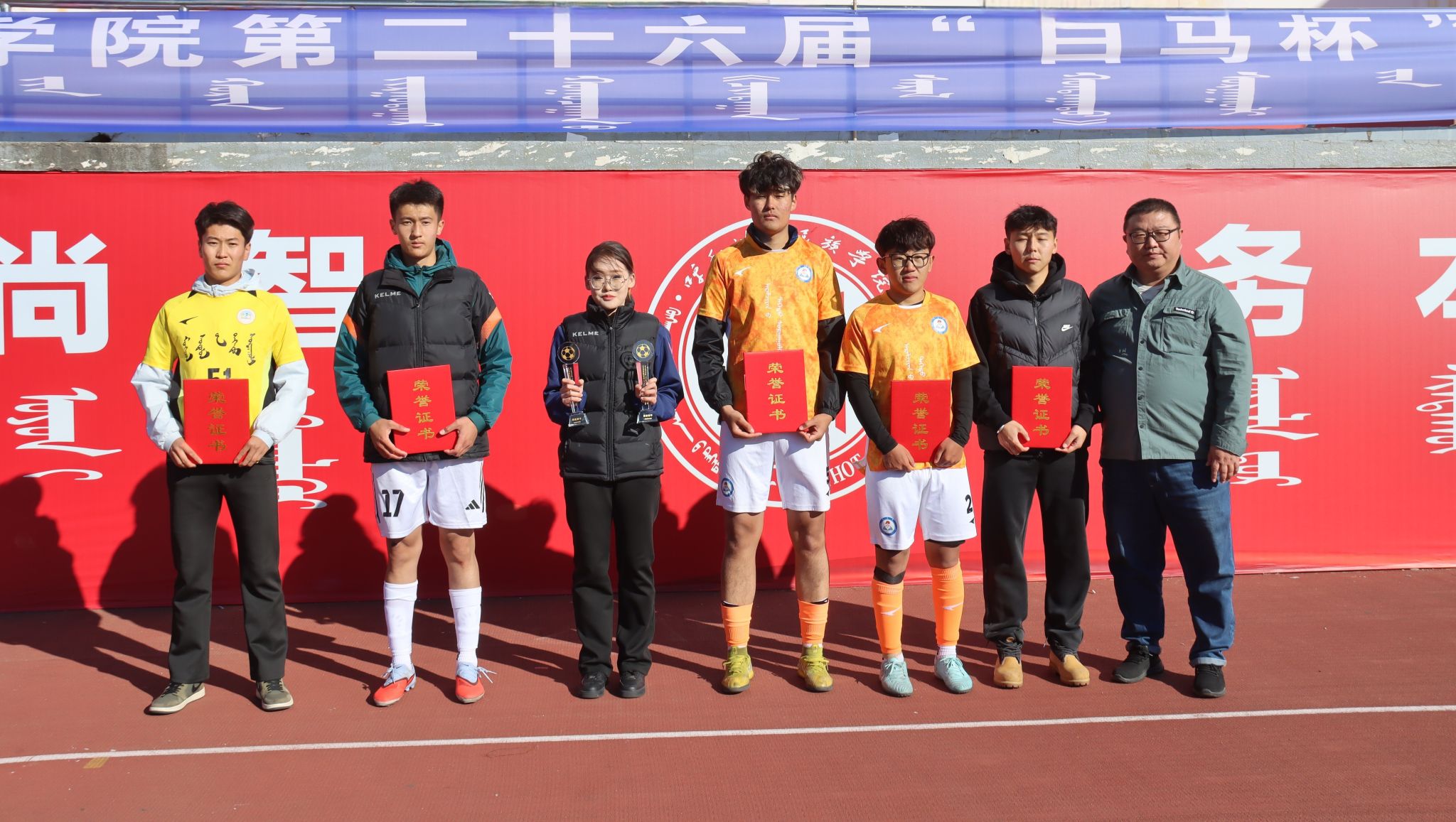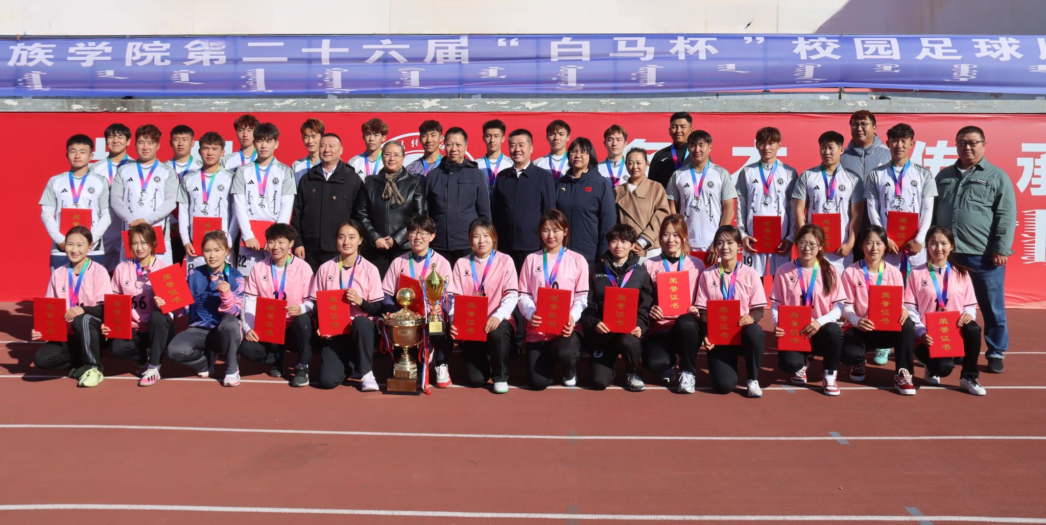 为深化民族团结进步教育,持续推动校园文化建设走深走实,由校团委主办、体育学院承办的第二十六届“白马杯”校园足球赛决赛于10月17日在南操场举行。校党委委员、纪委书记、监察专员王冬梅,校党委委员、副校长双虎出席并为获奖团队颁奖。