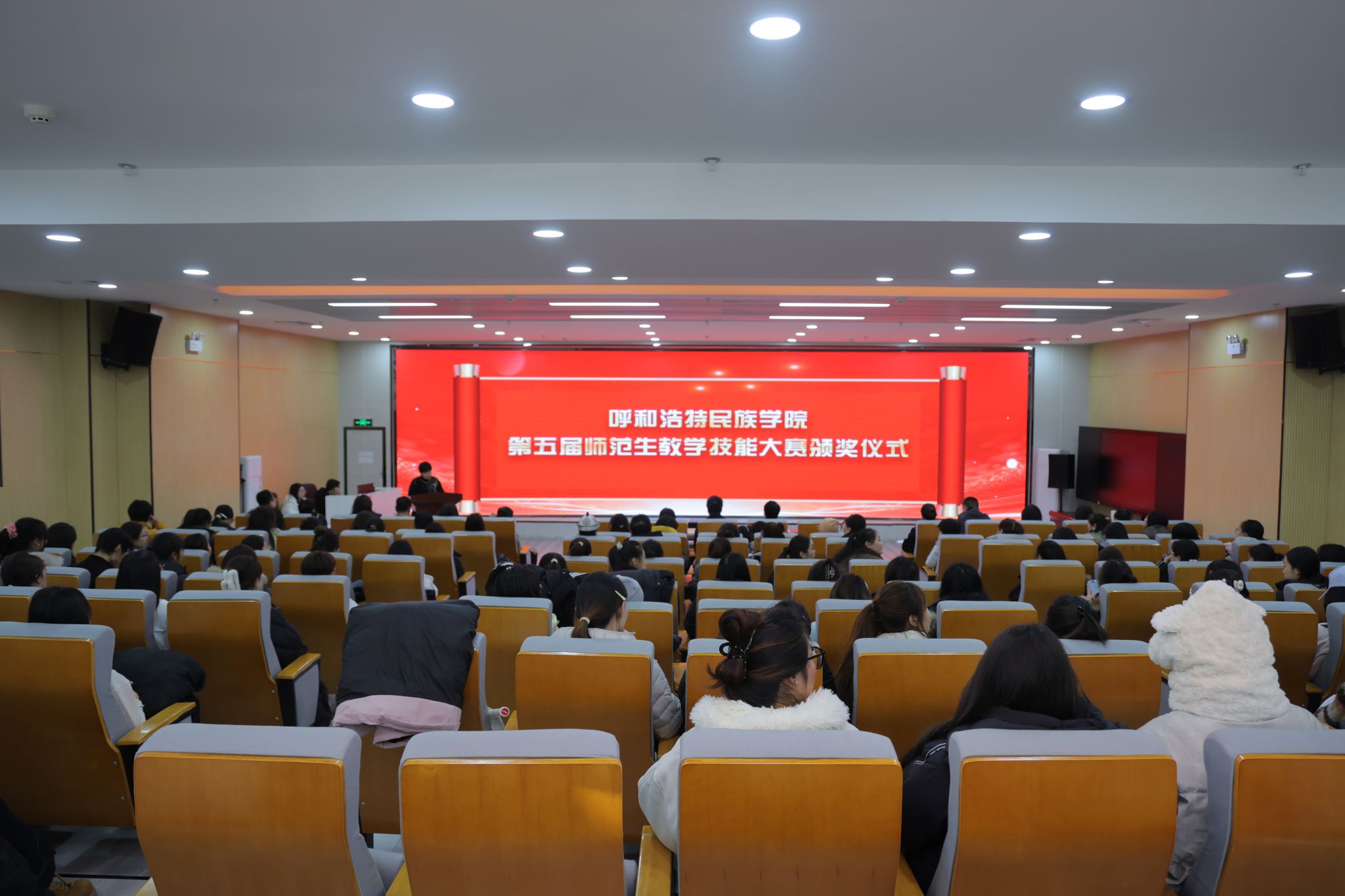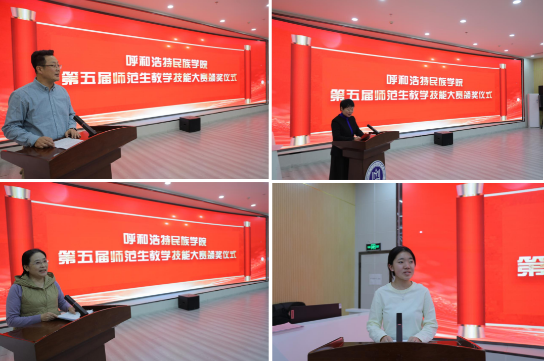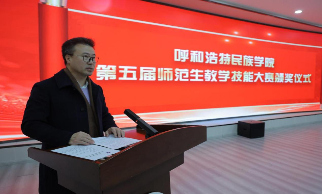11月25日,学校第五届师范生教学技能大赛颁奖仪式在铸牢中华民族共同体意识教育馆一楼报告厅举行。本届大赛由师范生技能训练中心主办,教育学院承办,大赛以“以赛促训、以训强能”为宗旨。校党委委员、副校长额尔敦布和出席并讲话,教务处、师范生技能训练中心、赛事评委组成员、师范生培养相关学院负责人以及师生代表参加,颁奖仪式由教育学院副院长朱乌英嘎主持。
