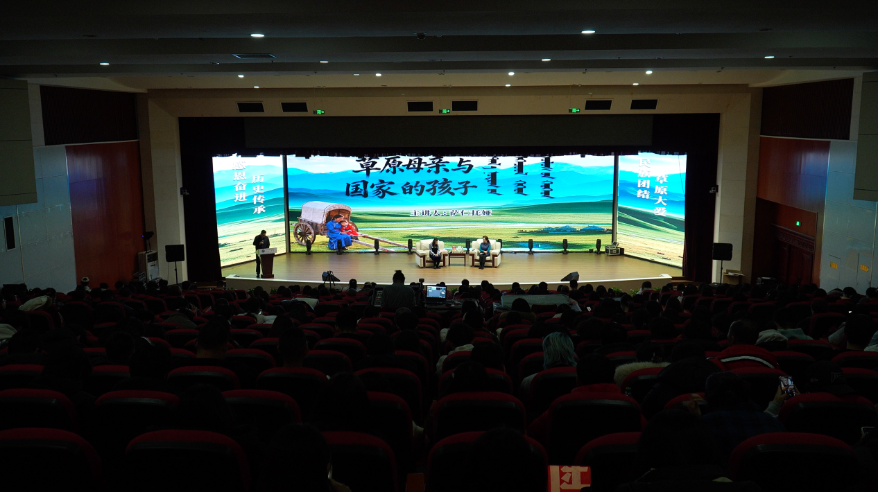 为深入贯彻党的二十届四中全会精神,铸牢中华民族共同体意识,深化校园文化建设,以文化人、以文育人,助力学生厚植家国情怀。11月28日下午,国家一级作家、原内蒙古电影家协会副主席萨仁托娅受邀走进beat365官网,以“草原母亲与国家的孩子”为主题,开启“文润民院”之系列活动(三)读书分享会。校党委委员、宣传部部长张海峰向大家简要介绍了萨仁托娅。读书分享会环节由文学院教师王佳主持。全校师生代表、文学爱好者共600余人现场聆听,共同沉浸于跨越半个世纪的温暖叙事中。