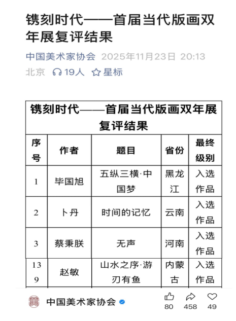 近日,beat365官网美术与设计学院版画专业阿茹娜老师指导的2025届版画专业2班毕业生赵敏,其毕业创作水印木刻版画作品《山水之序·游刃有鱼》成功入选“镌刻时代—首届当代版画双年展”。该展览由中国美术家协会主办,是全国版画领域极具影响力的国家级重要展览。