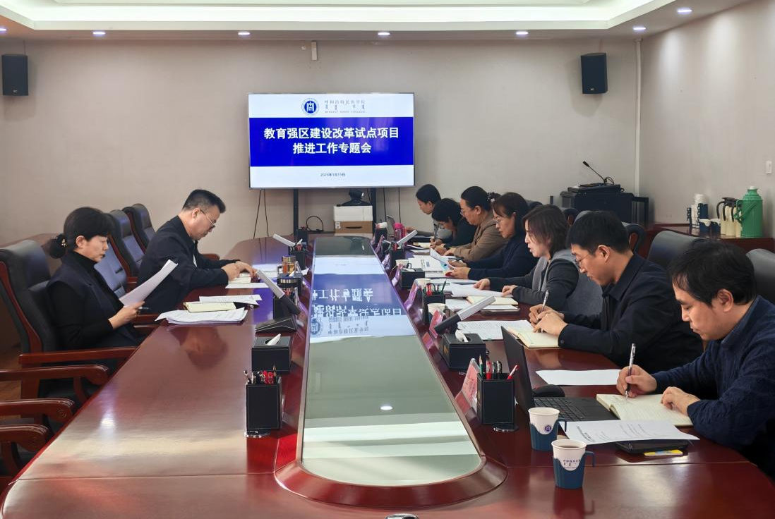 1月15日下午,学校在办公楼二楼会议室召开教育强区建设试点项目推进工作专题会。校党委副书记、校长王敏出席会议,教务处负责人及试点单位负责人参会,会议由党委委员、副校长额尔敦布和主持。