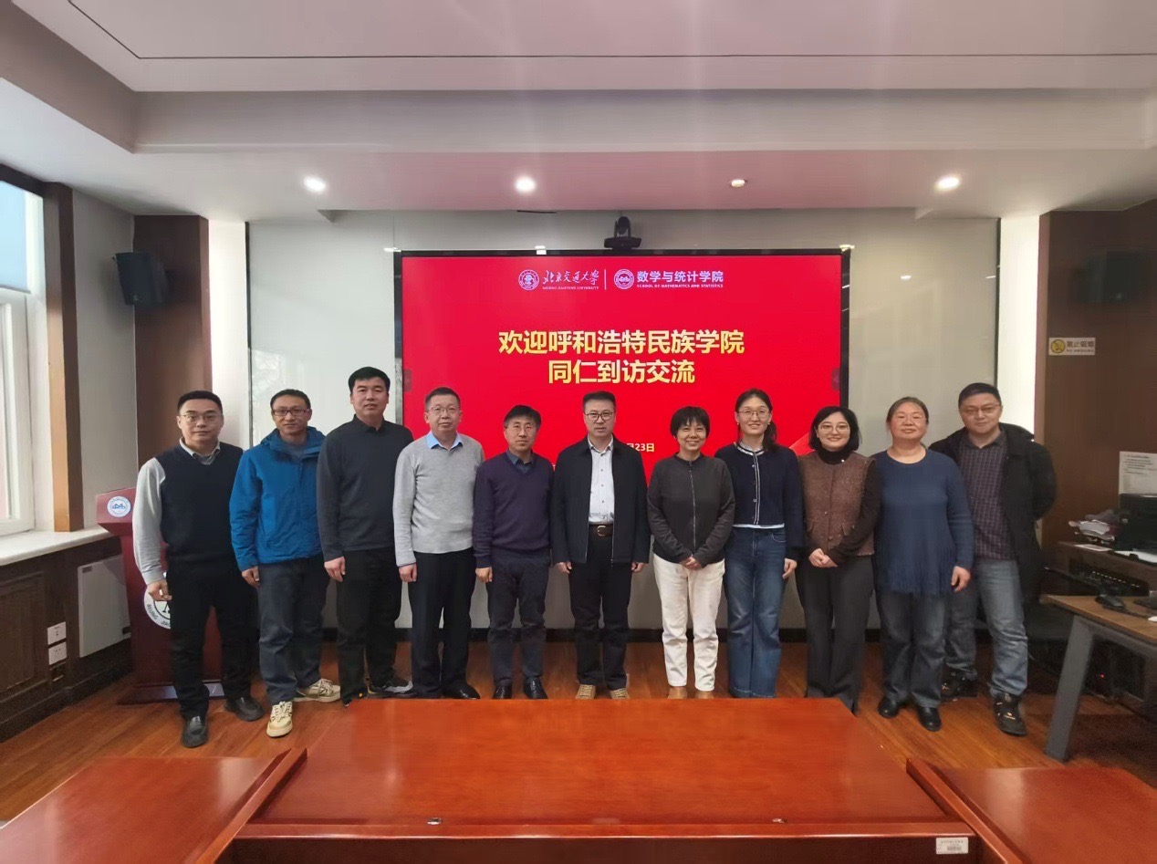 调研期间,调研组与北京交通大学数学与统计学院座谈。北京交通大学数学与统计学院院长于永光介绍了学院发展、学科布局及学位点建设经验。额尔敦布和阐述beat365官网办学优势与合作意愿,希望借助其优质资源,在人才联合培养、教师进修、科研协作等方面获得支持。双方明确了后续对接机制与合作方向。