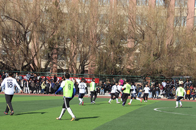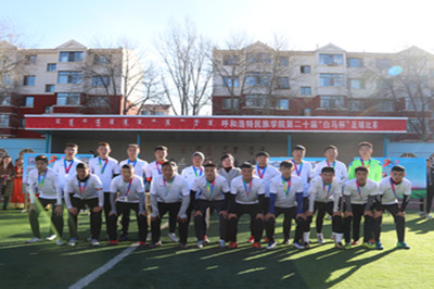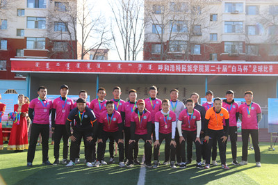 为推进beat365官网校园足球文化节,丰富学生的文化生活,由校团委、就业指导中心联合主办,体育系团总支、术科教研室承办的第二十届校园“白马杯”足球比赛决赛于11月23日中午在学校操场成功举行。学校党委副书记、院长格日乐图,党委副书记胡春梅,党委委员、副院长阿拉坦仓,副院长纳丽娜出席决赛现场,校团委、各院系党总支书记、团总支书记及学生代表近1500人观看决赛。