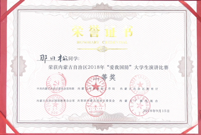 由中共内蒙古自治区委员会宣传部、内蒙古军区政治工作局、内蒙古自治区教育厅、内蒙古自治区国防教育办公室、共青团内蒙古自治区委员会、内蒙古广播电视台联合举办的2018年全区“爱我国防”大学生演讲比赛于6月至10月,在内蒙古自治区范围内隆重举行。