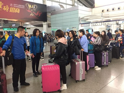 纳丽娜副院长在机场与赴新疆实习支教学生交谈