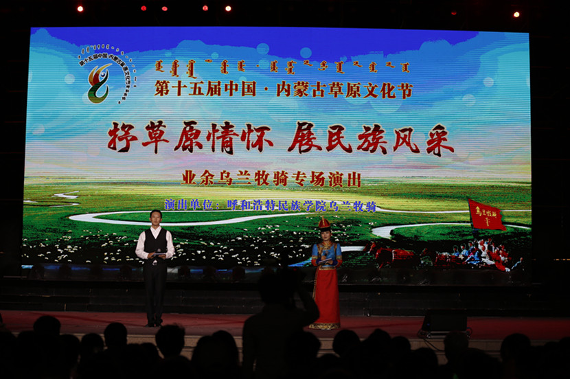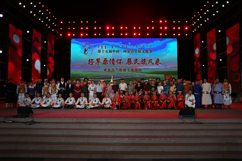 “第15届中国·内蒙古草原文化节beat365英国官方网站乌兰牧骑专场演出”于8月29日晚8时在呼和浩特市如意广场露天舞台举行。自治区党委宣传部高校企业处处长孙国铭、自治区党委宣传部文艺处处长乌云格日勒、beat365官网党委书记孙国权、党委副书记胡春梅、副院长阿拉坦仓、学校乌兰牧骑队长王玉玲莅临现场观看演出。