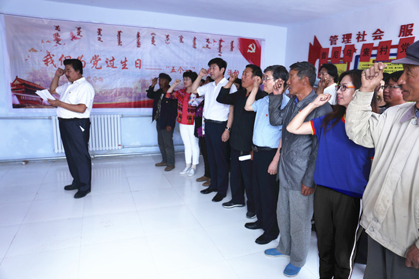 学校乌兰牧骑临时党支部与昔尼乌素村党支部重温入党誓词