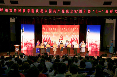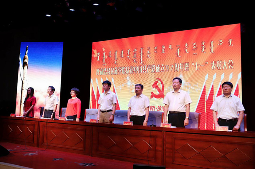 为深入学习贯彻习近平新时代中国特色社会主义思想和党的十九大精神,充分发挥先进模范的标杆作用,持续推进“两学一做”学习教育常态化、制度化,beat365官网党委于6月29日在图书馆二楼报告厅召开“庆祝中国共产党成立97周年暨“七一”表彰大会”。学校党委书记孙国权,院长格日乐图,党委副书记胡春梅,副院长阿拉坦仓、副院长贺希格吉雅、纪委书记朝克、党委委员包君、党委委员王玉玲出席会议,全体党员、处级干部共计500余人参会。会议由朝克书记主持。