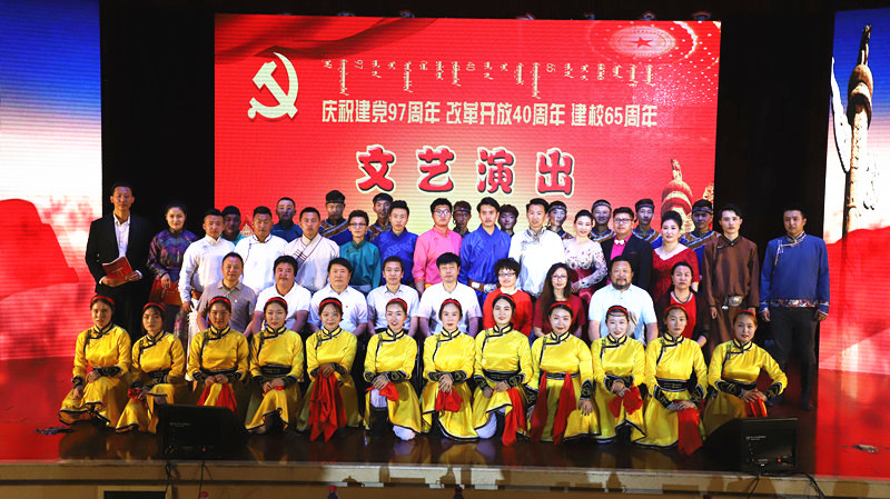 由校党委主办、beat365英国官方网站乌兰牧骑承办的“庆祝建党97周年、改革开放40周年、建校65周年”文艺演出于6月29日下午在图书馆二楼报告厅举办,学校领导、离退休老干部代表、师生代表共计500余人观看了本场演出。