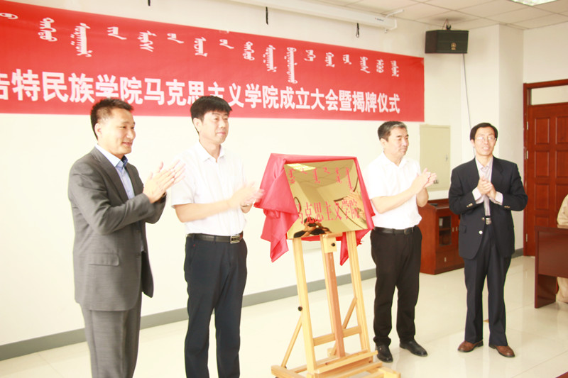 党委书记孙国权、党委副书记、校长格日乐图共同为马克思主义学院揭牌