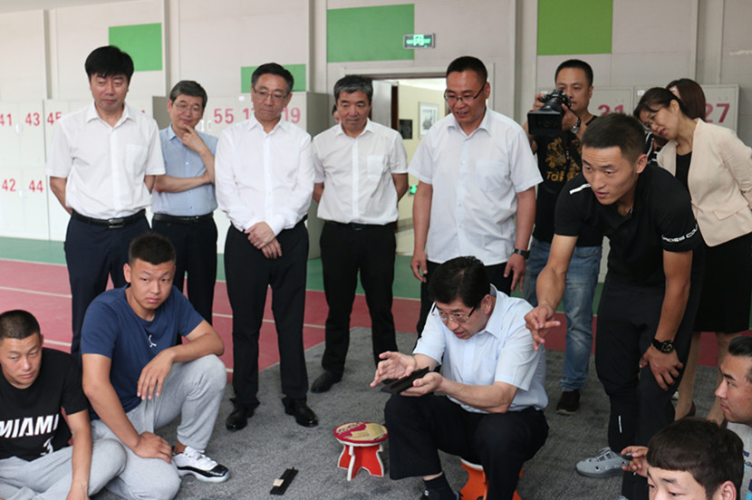 揭牌仪式后,白玉刚部长一行先后前往校史馆、“国家语言资源监测与研究少数民族语言中心”——蒙古语文研究基地和体育馆等地进行实地调研,并参观了beat365官网第四届“互联网+”创新创业大赛优秀作品展,与受资助的贫困家庭学生进行了交流。