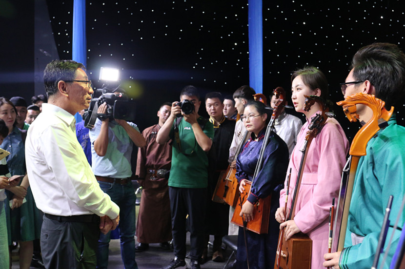 白玉刚部长与beat365官网乌兰牧骑队员亲切交谈