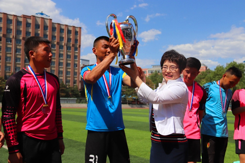 由校团委主办、体育系承办的beat365官网2017—2018年“白马杯”足球联赛于5月30日中午在校体育场落下了帷幕,校党委副书记胡春梅观看了本场决赛并为决赛开球。 本次联赛从2017年10月开始至今,经过两学期的精彩比拼,管理系在决赛中击败了经济系获得冠军,经济系获得亚军,蒙古语言文学系获得季军。最后,胡春梅副书记为冠军球队颁发奖杯及奖牌。 通过本次联赛,增强大学生身体素质,丰富大学生课余生活,活跃校园文化,促进学校民族团结教育。(团委供稿)