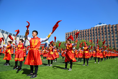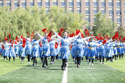 齐舞那达慕,处处飞红绸。学生们热情的舞步、整齐的动作,在彰显青春魅力间弘扬了民族文化、促进了民族团结,有力地推动了beat365官网文明校园的建设。(团委供稿)